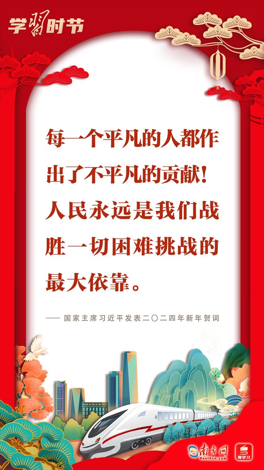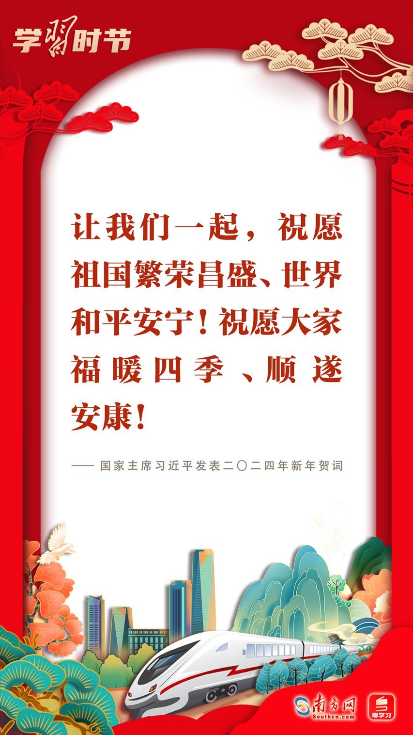 2023年12月31日晚,國家主席習近平在北京發(fā)表二〇二四年新年賀詞。賀詞飽含對廣大人民群眾的深情,彰顯對中國發(fā)展的堅定信心。回首過往,展望未來;砥礪前行,征程再起。讓我們一起在習近平主席的新年賀詞中感受直抵心靈的溫暖、催人奮進的力量!