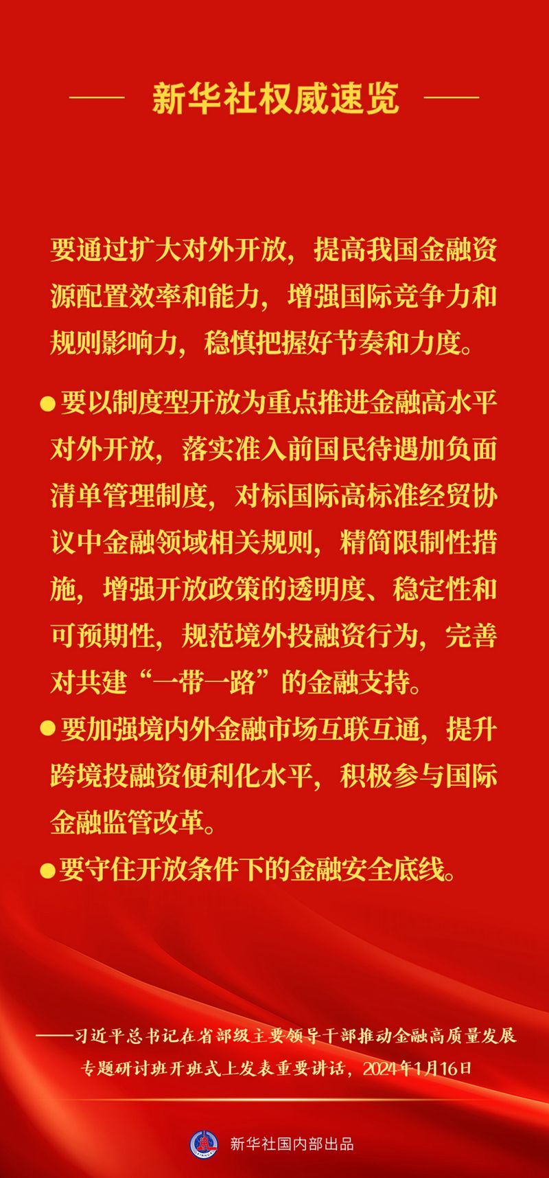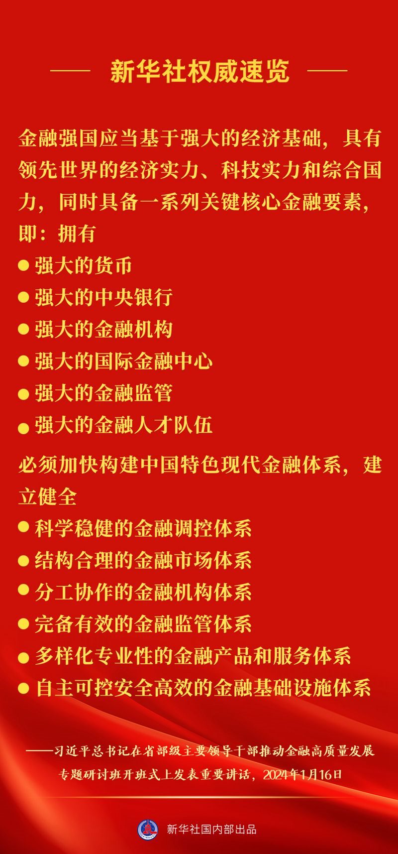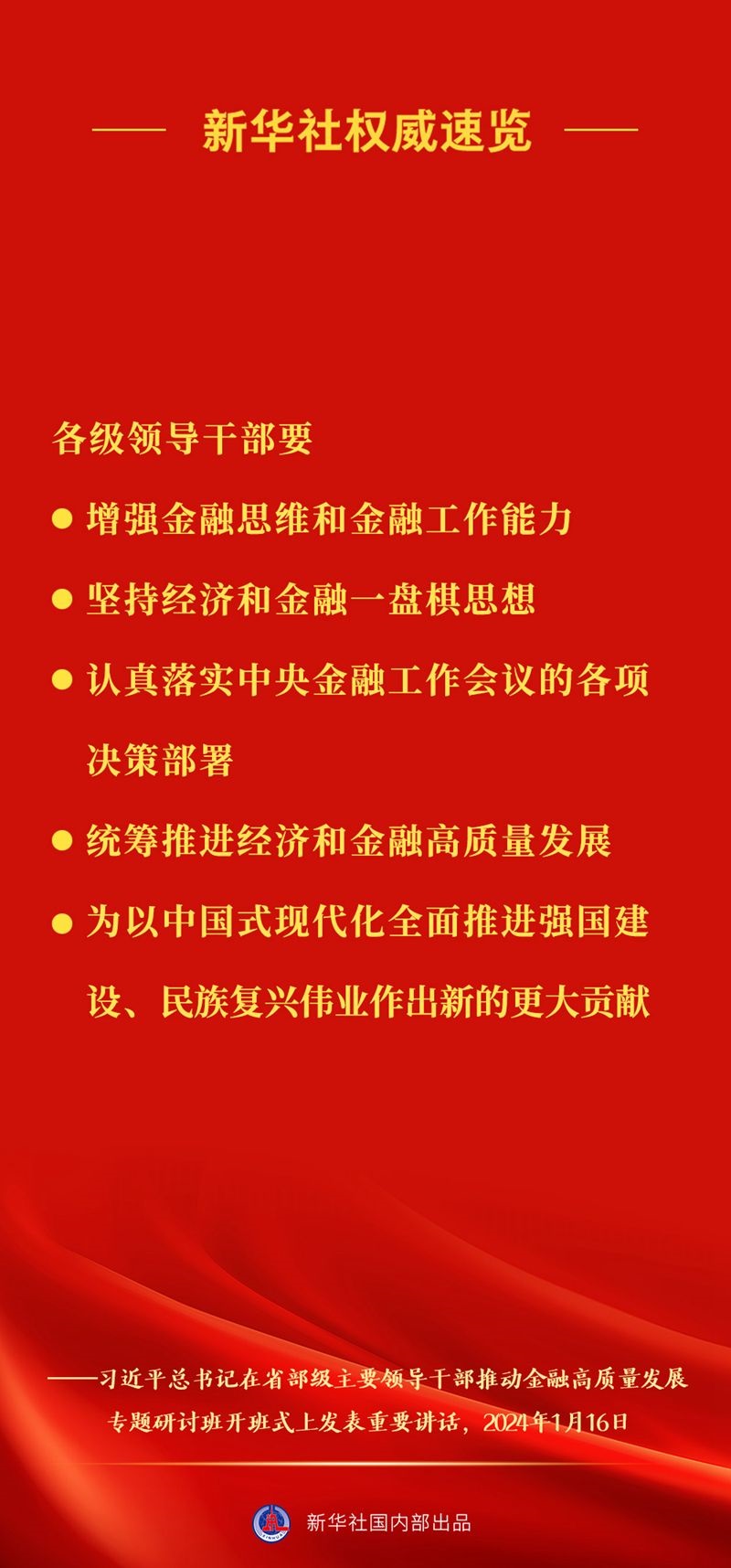 習(xí)近平總書記16日上午在省部級主要領(lǐng)導(dǎo)干部推動(dòng)金融高質(zhì)量發(fā)展專題研討班開班式上發(fā)表重要講話,一起來看講話要點(diǎn)。
