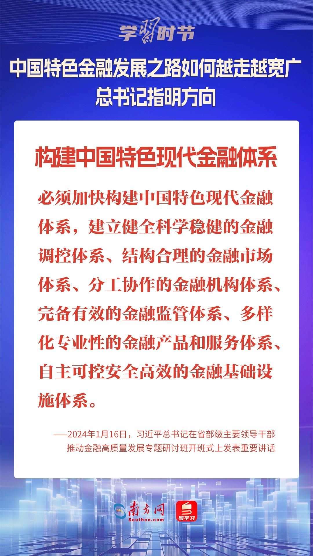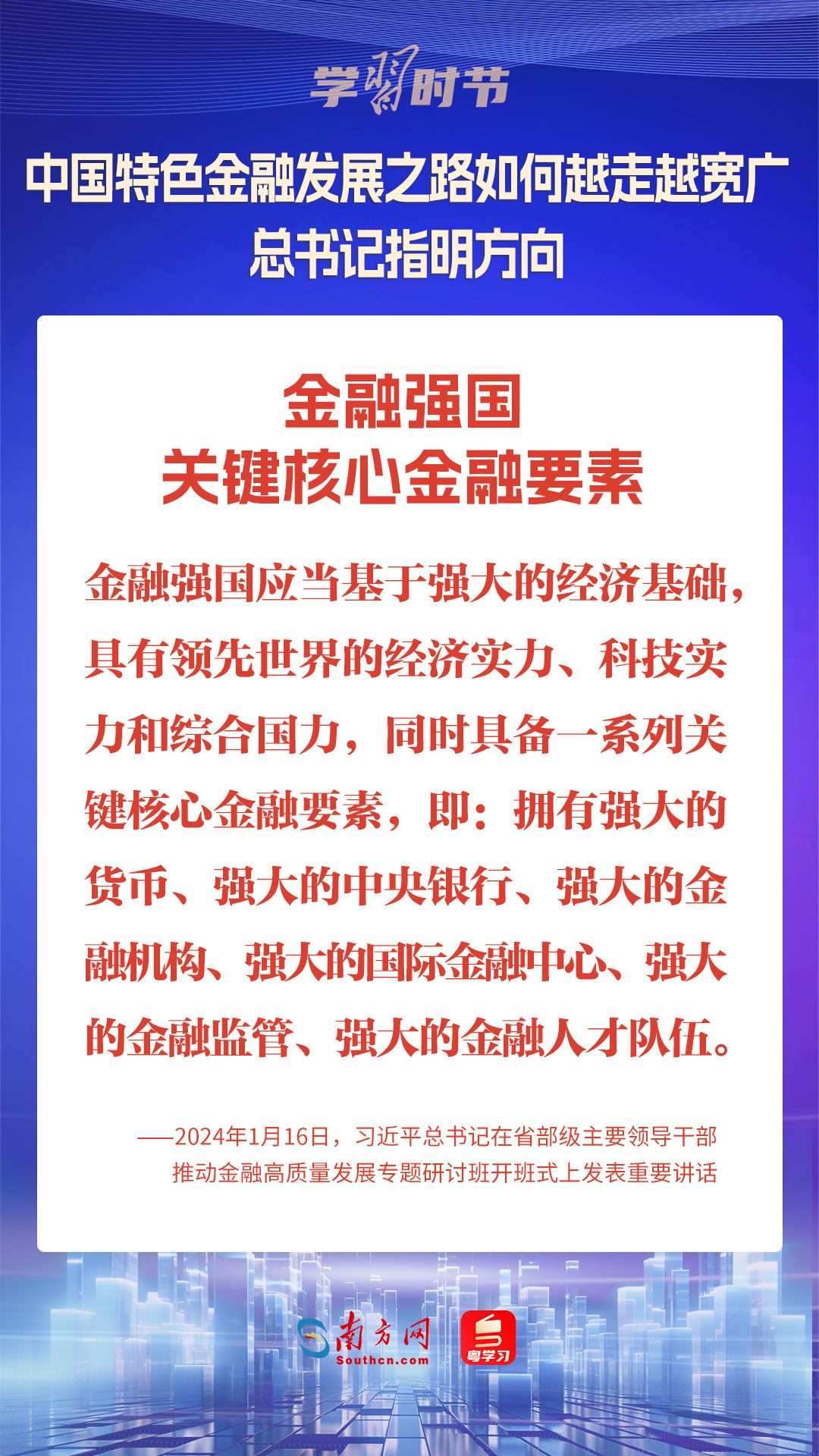 1月16日,中共中央總書記、國家主席、中央軍委主席習(xí)近平在省部級主要領(lǐng)導(dǎo)干部推動(dòng)金融高質(zhì)量發(fā)展專題研討班開班式上發(fā)表重要講話,為中國特色金融發(fā)展之路指明方向。