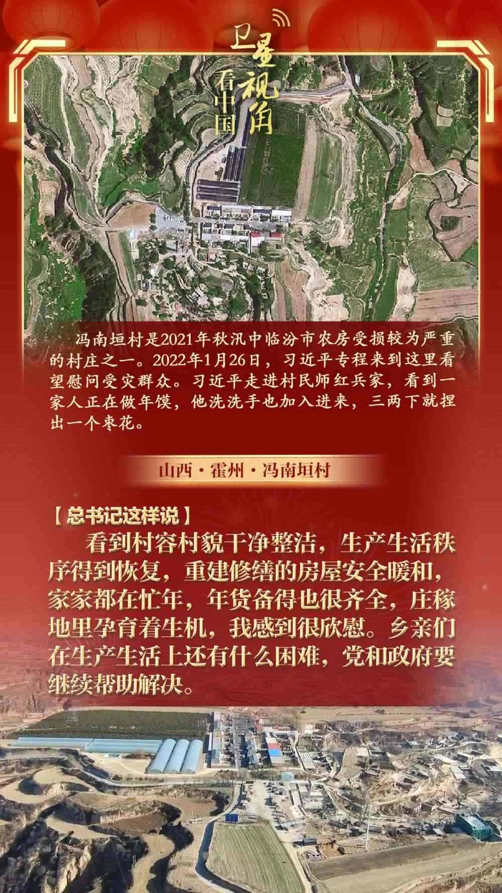 讓我們通過衛(wèi)星視角,看看總書記春節(jié)前夕考察過的那些鄉(xiāng)村,重溫總書記和村民們?cè)谝黄鸬臏嘏查g。