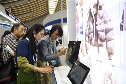 △ 2023年11月9日,“互聯(lián)網之光”博覽會上,人工智能服裝設計技術吸引參觀者駐足體驗。