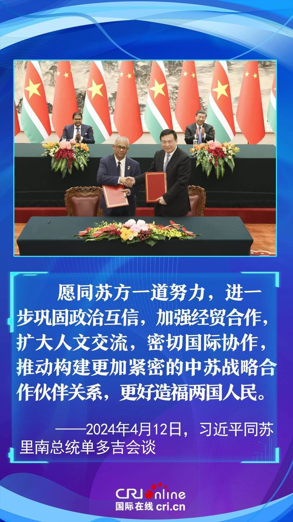 今年是中國和蘇里南建立戰(zhàn)略合作伙伴關(guān)系五周年。習(xí)近平主席在會(huì)談中以“源遠(yuǎn)流長、歷久彌堅(jiān)”為中蘇友誼增添了新的注解,為推動(dòng)構(gòu)建更加緊密的中蘇戰(zhàn)略合作伙伴關(guān)系指明了方向。