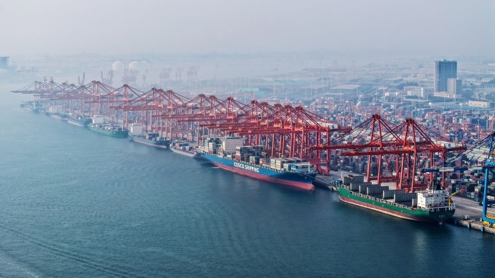 2024年3月28日,在廣西欽州港碼頭,多艘海輪在排隊卸貨(無人機(jī)照片)。據(jù)統(tǒng)計,截至3月29日,今年西部陸海新通道鐵海聯(lián)運(yùn)班列運(yùn)輸集裝箱貨物20.03萬標(biāo)箱,同比增長7.2%。
