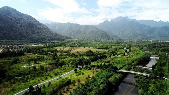 △陜西省西安市長(zhǎng)安區(qū)秦嶺違建別墅“群賢別業(yè)”拆除后建設(shè)的秦嶺和諧森林公園。