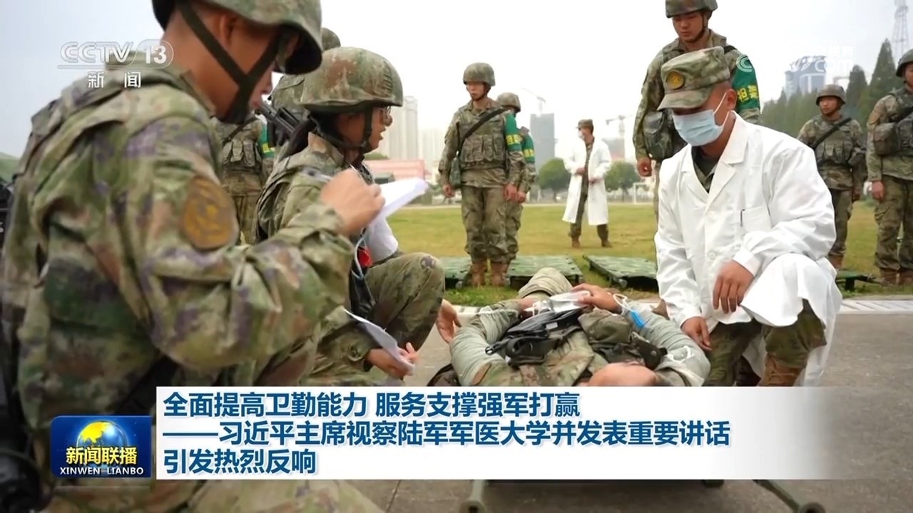 央視網(wǎng)消息(新聞聯(lián)播):中共中央總書記、國家主席、中央軍委主席習近平4月23日到陸軍軍醫(yī)大學視察,強調(diào)面向戰(zhàn)場、面向部隊、面向未來,努力建設(shè)世界一流軍醫(yī)大學。廣大官兵認真學習領(lǐng)會講話精神,表示要牢記統(tǒng)帥勉勵囑托,聚焦練兵備戰(zhàn),加快創(chuàng)新發(fā)展,全面提升衛(wèi)勤保障能力,為強軍打贏提供有力支撐。
