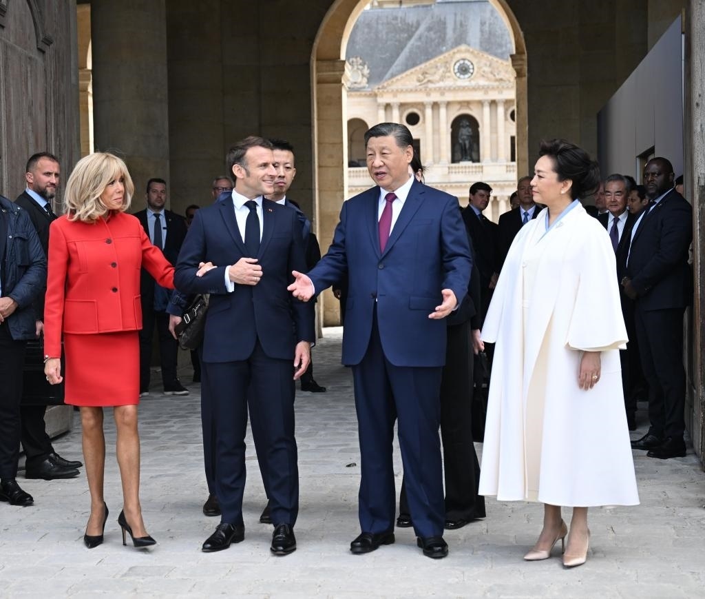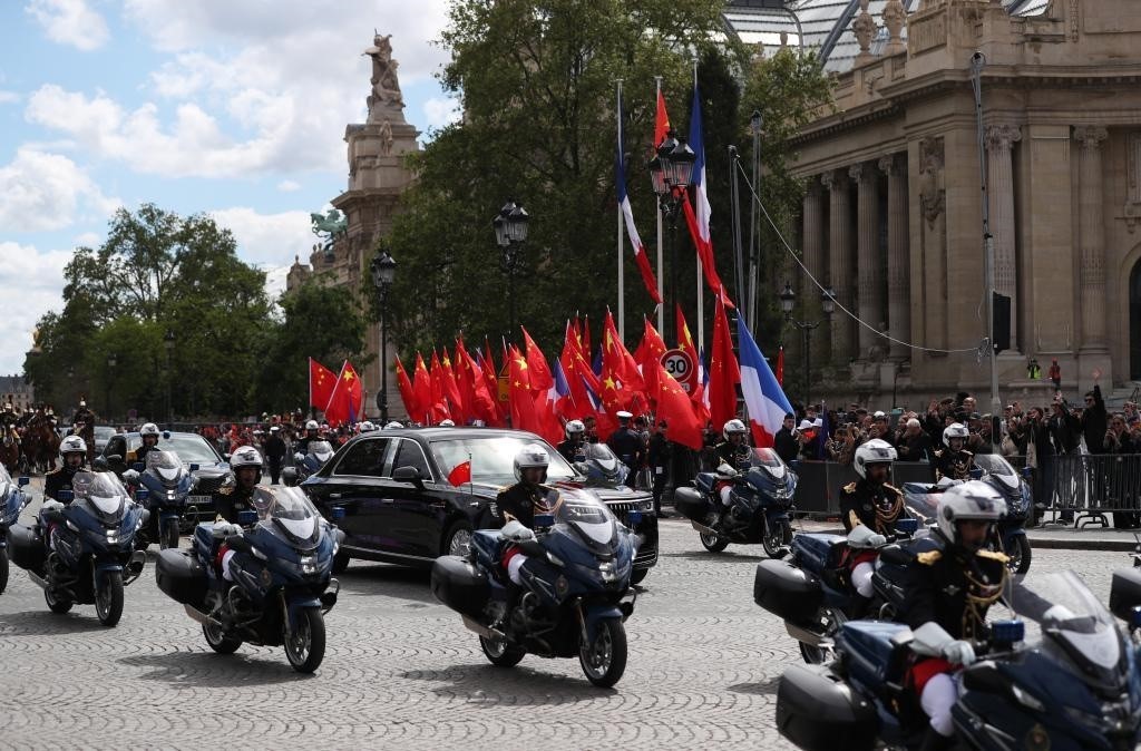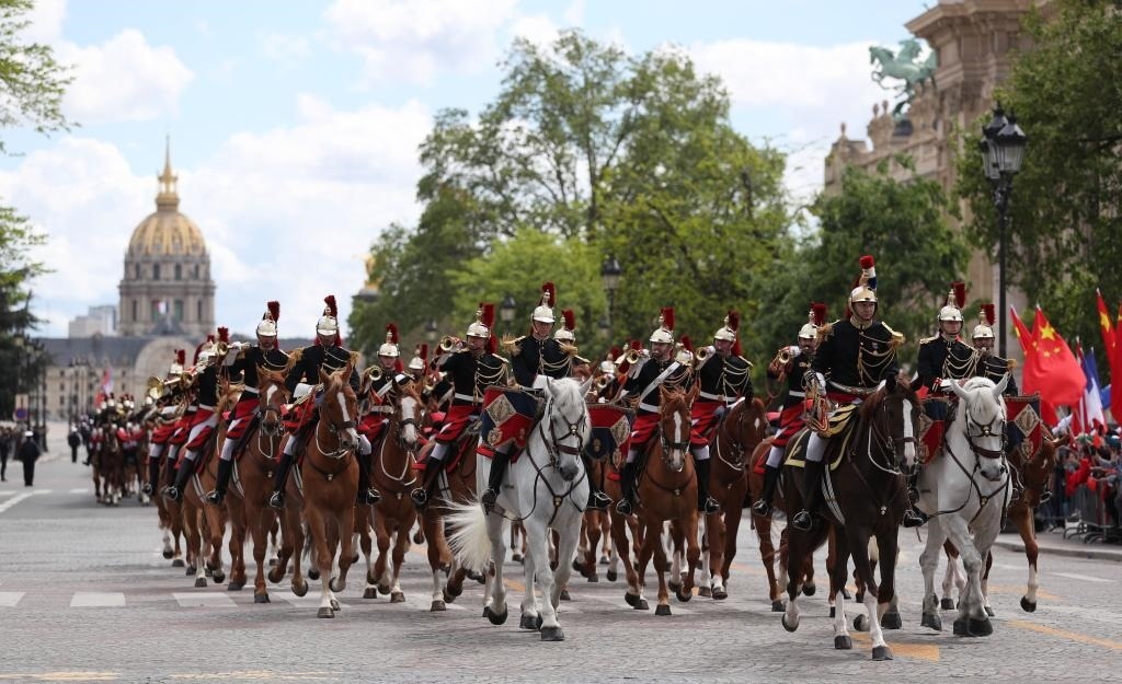 五月的巴黎,風(fēng)和景明。塞納河畔,榮軍院金色穹頂熠熠生輝,五星紅旗和藍(lán)白紅三色旗迎風(fēng)飄揚。