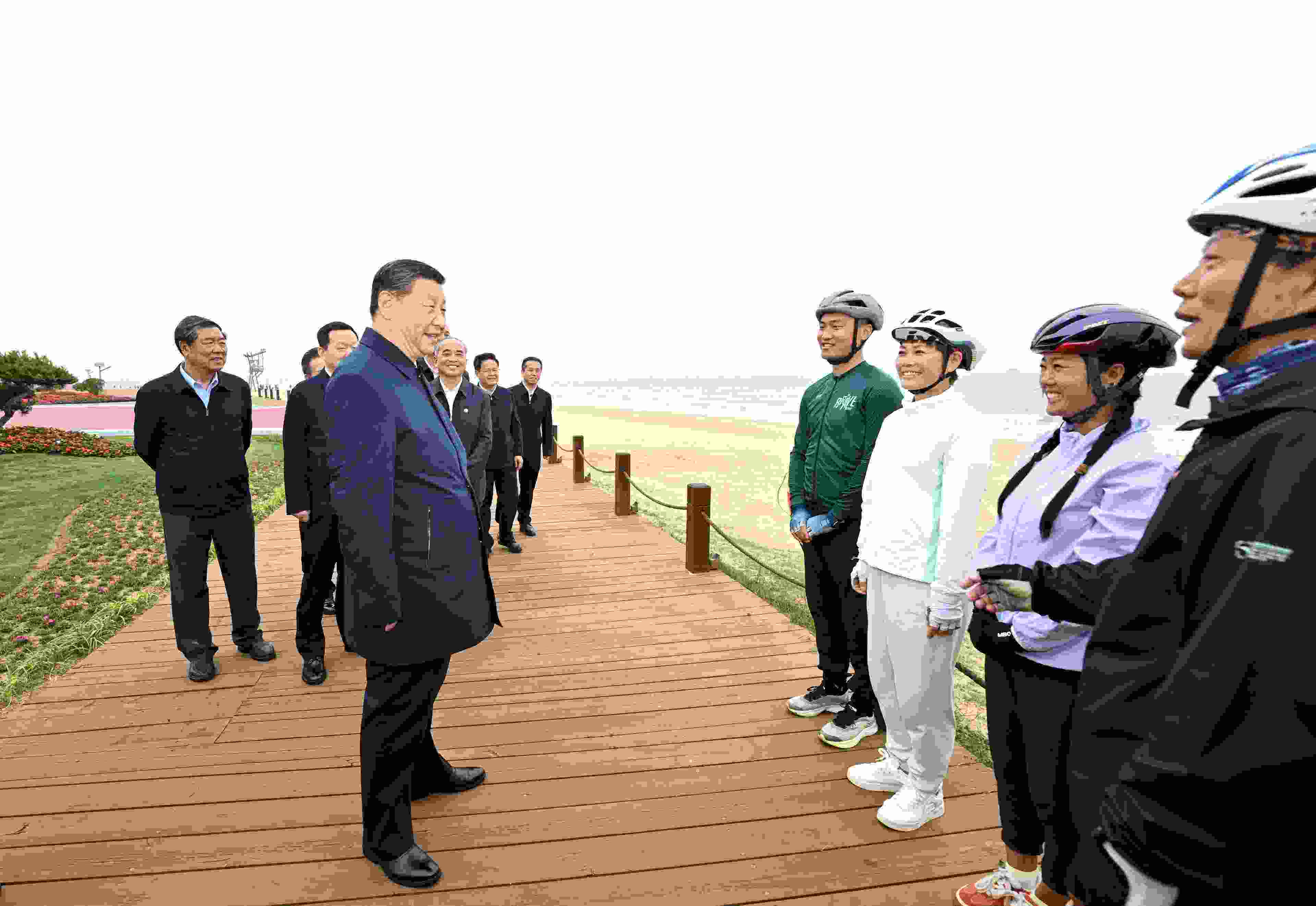 22日下午,習(xí)近平總書記來到山東日照市陽光海岸綠道,實(shí)地察看修復(fù)治理后的海岸線生態(tài)環(huán)境,并同正在海邊休閑鍛煉的市民游客親切交流。習(xí)近平強(qiáng)調(diào),老百姓的幸福生活是干出來的。我們要靠實(shí)干奮斗,實(shí)現(xiàn)中華民族偉大復(fù)興,使人民群眾生活越來越好。(杜尚澤)