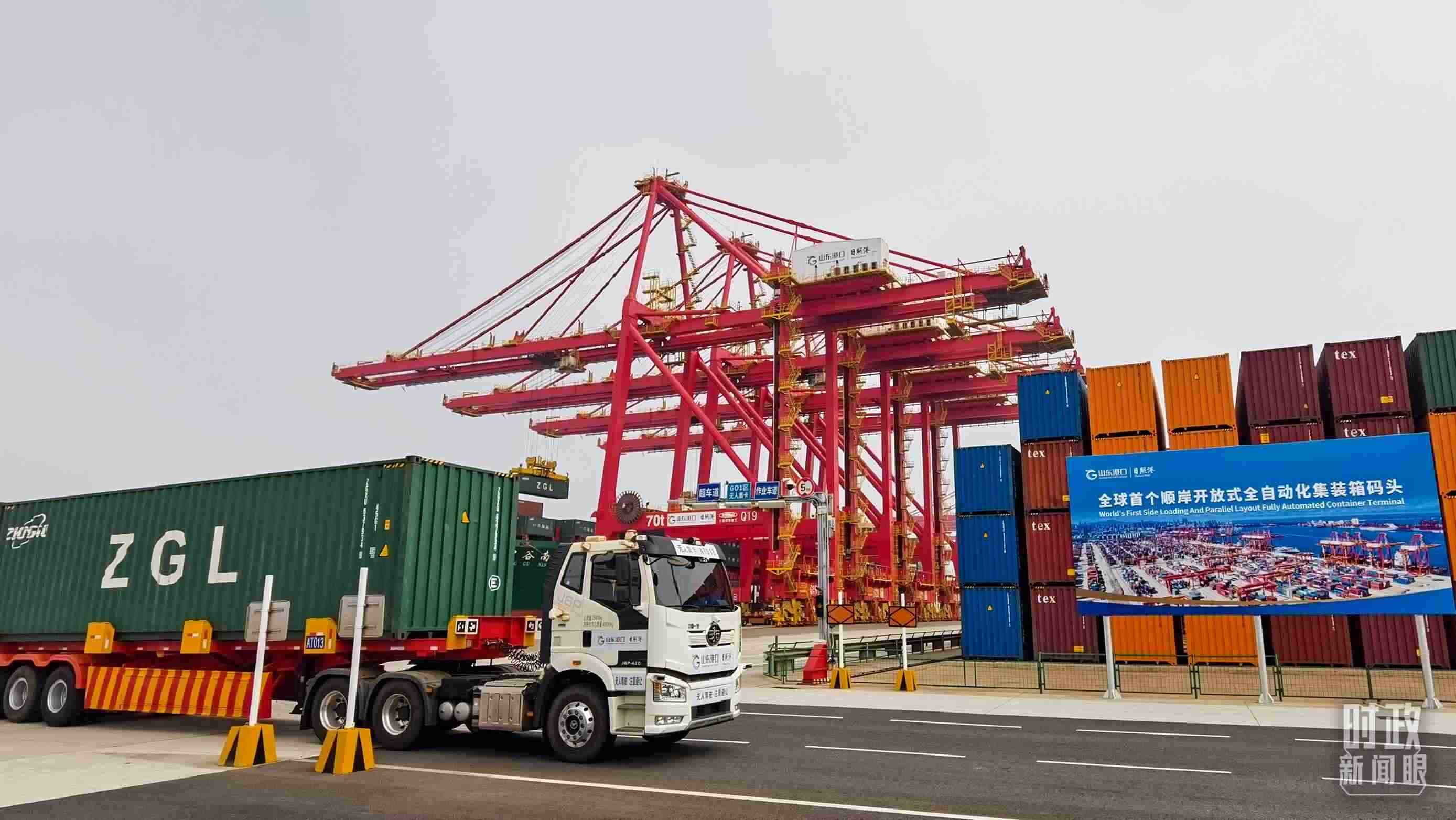 這里不僅是國(guó)家支持建設(shè)的大宗干散貨智慧綠色示范港口,還建成全球首個(gè)順岸開放式全自動(dòng)化集裝箱碼頭,單機(jī)效率提升50%,每年可削減碳排放9000多噸。