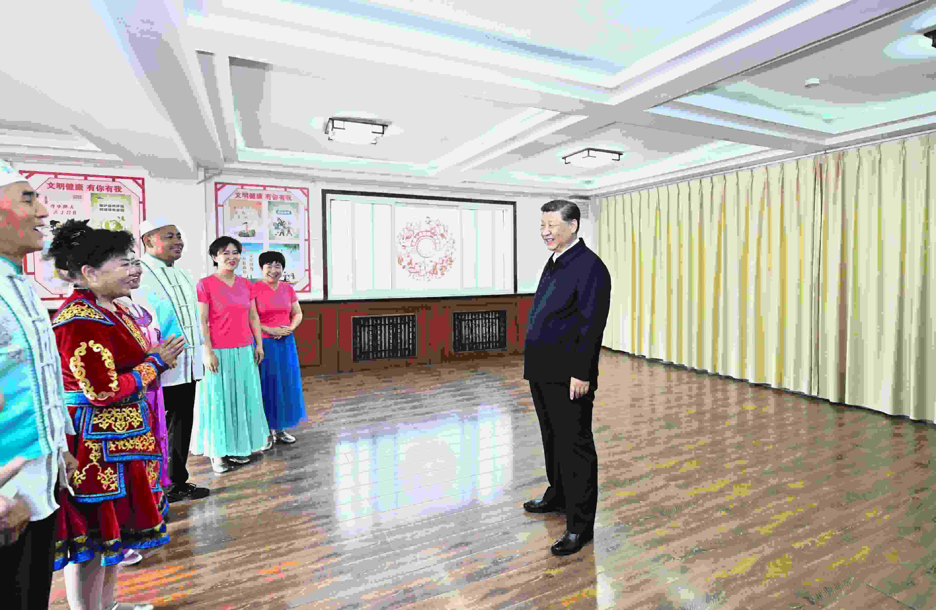 19 日下午,習(xí)近平總書記在寧夏回族自治區(qū)考察調(diào)研。他來到銀川市金鳳區(qū)長城花園社區(qū),了解社區(qū)發(fā)揮基層黨組織作用、優(yōu)化便民惠民服務(wù)、推動各族群眾交往交流交融等情況。(杜尚澤)