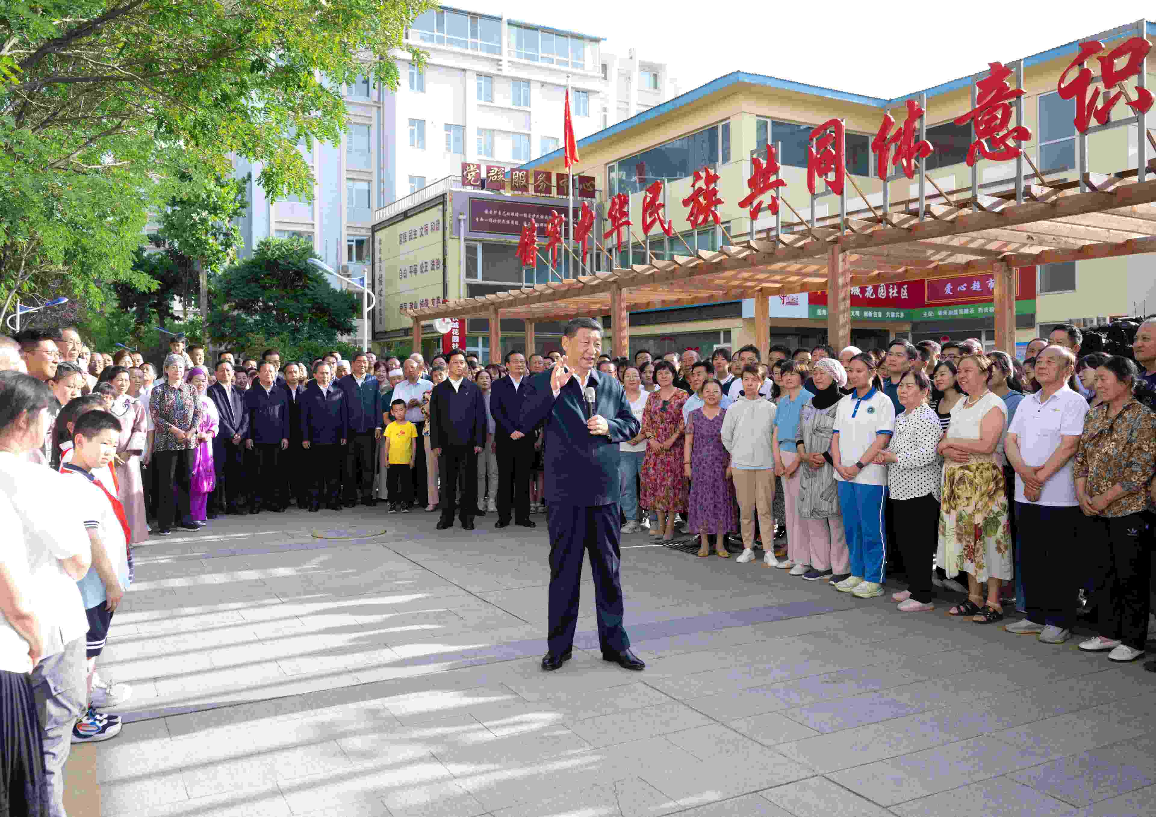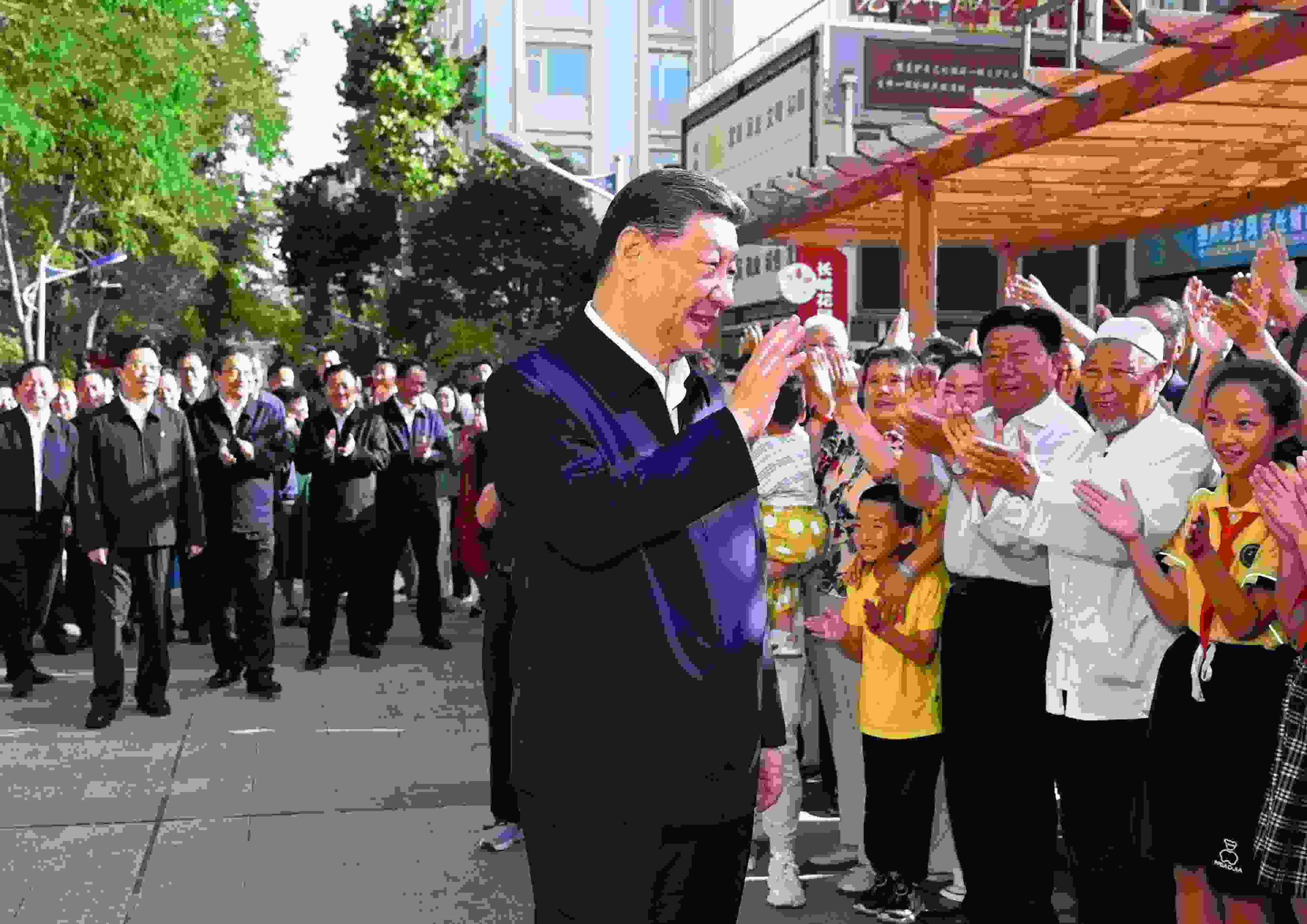19日下午,習(xí)近平總書(shū)記來(lái)到寧夏銀川市金鳳區(qū)長(zhǎng)城花園社區(qū)考察??吹竭@個(gè)多民族聚居的社區(qū)其樂(lè)融融,各族群眾和睦相處、生活幸福,習(xí)近平十分高興。他說(shuō),民族團(tuán)結(jié)非常重要,我們五十六個(gè)民族要像石榴籽一樣緊緊抱在一起。五十六個(gè)民族凝聚在一起就是中華民族共同體,中華民族是一個(gè)大家庭。我們共同奮斗,一起推進(jìn)中國(guó)式現(xiàn)代化,實(shí)現(xiàn)中華民族偉大復(fù)興?。ǘ派袧桑?/p>