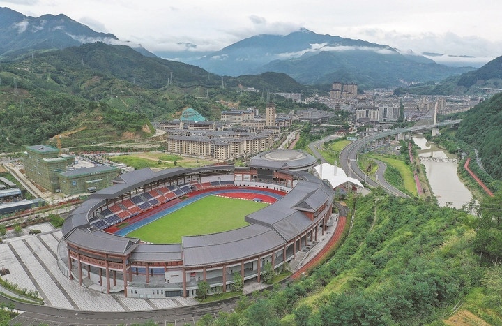 集籃球館、足球場(chǎng)、氣排球場(chǎng)、網(wǎng)球場(chǎng)等設(shè)施于一體的景寧體育公園。記者 林云龍 徐彥 葉錦霞 攝