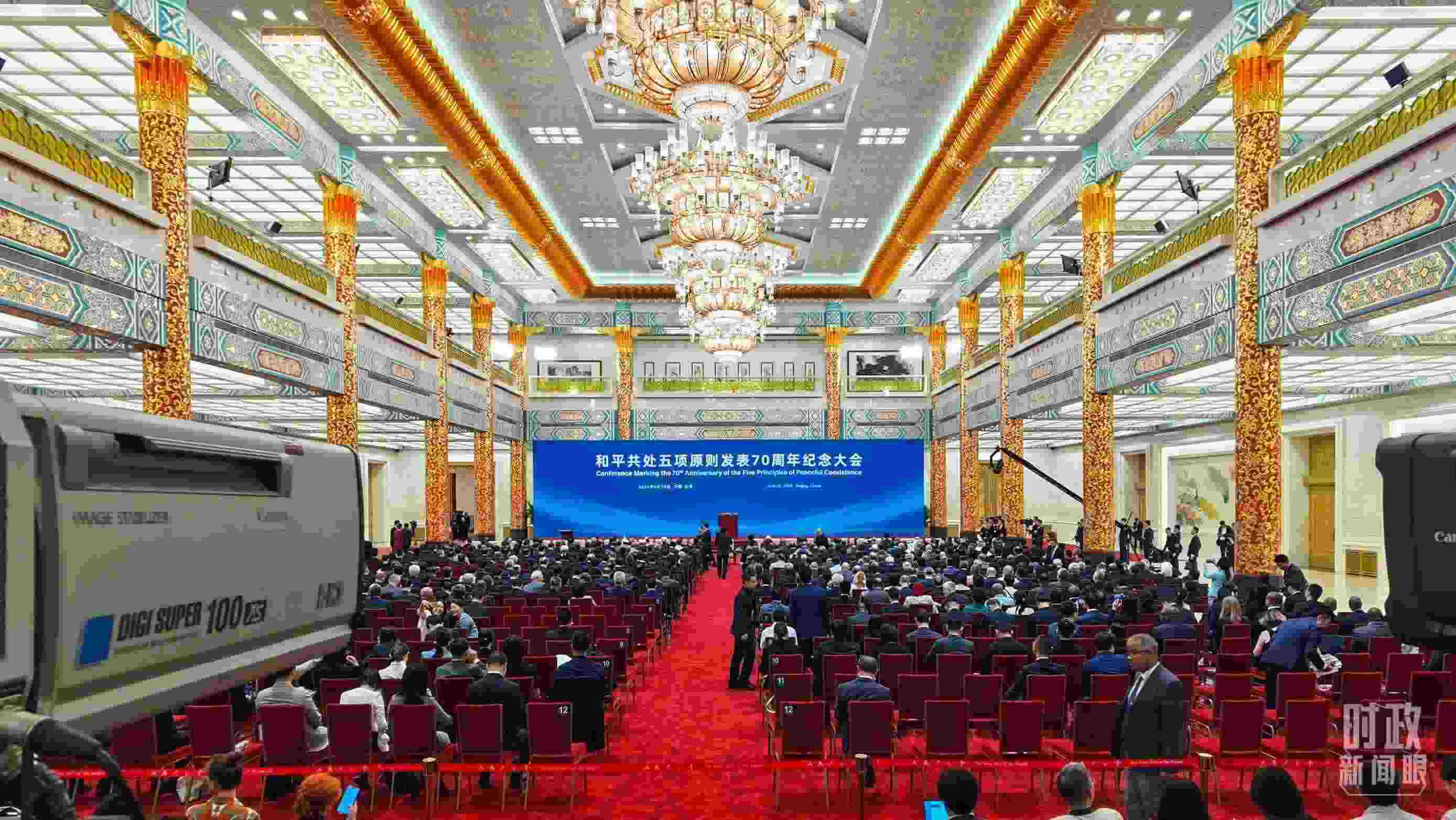 △和平共處五項(xiàng)原則發(fā)表70周年紀(jì)念大會(huì)現(xiàn)場(chǎng)。(總臺(tái)央視記者鄂介甫拍攝)