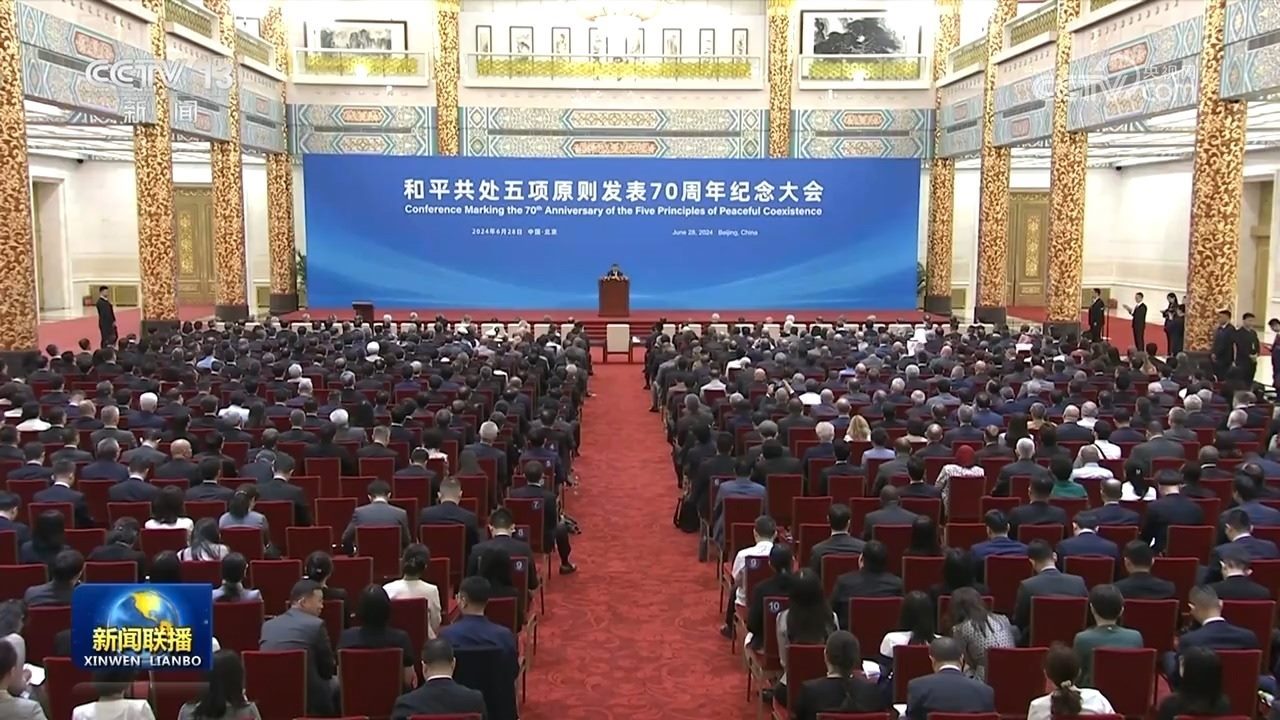 央視網(wǎng)消息(新聞聯(lián)播):6月28日,國(guó)家主席習(xí)近平出席和平共處五項(xiàng)原則發(fā)表70周年紀(jì)念大會(huì),并發(fā)表題為《弘揚(yáng)和平共處五項(xiàng)原則,攜手構(gòu)建人類(lèi)命運(yùn)共同體》的重要講話(huà)。習(xí)近平主席在講話(huà)中全面闡釋和平共處五項(xiàng)原則的精神內(nèi)涵和時(shí)代價(jià)值,在世界百年未有之大變局中指明構(gòu)建人類(lèi)命運(yùn)共同體的前進(jìn)方向,發(fā)出“全球南方”同世界各國(guó)人民共創(chuàng)美好未來(lái)的時(shí)代強(qiáng)音。與會(huì)國(guó)內(nèi)外人士表示,習(xí)近平主席的重要講話(huà)飽含著對(duì)歷史的深邃思考、對(duì)現(xiàn)實(shí)的深刻分析、對(duì)未來(lái)的長(zhǎng)遠(yuǎn)謀劃,必將對(duì)推動(dòng)各國(guó)同心協(xié)力建設(shè)更加美好世界產(chǎn)生重大而深遠(yuǎn)的影響。