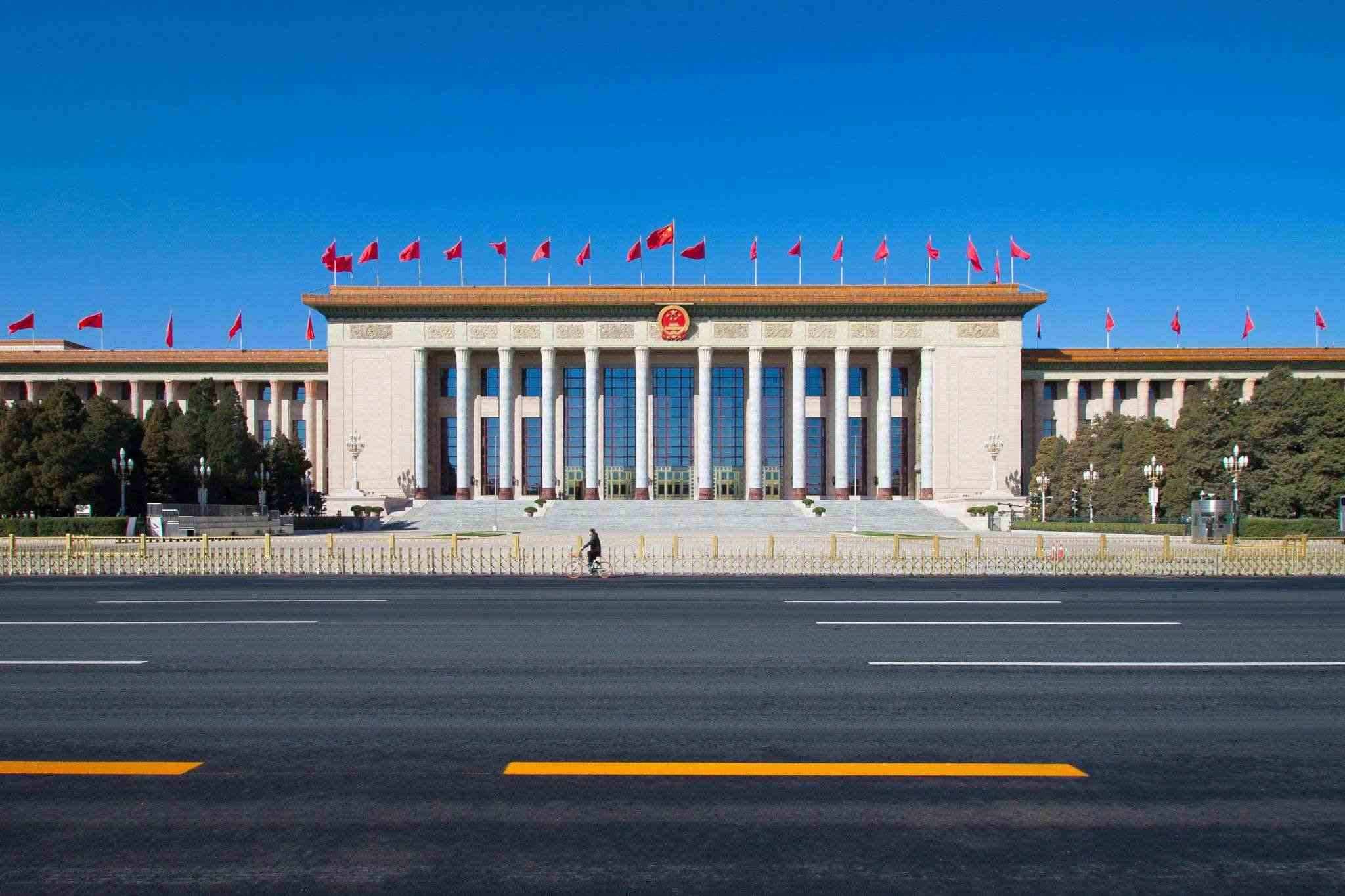 △北京人民大會堂設(shè)計(jì)中間部分最高,整組建筑平面呈“山”字形。