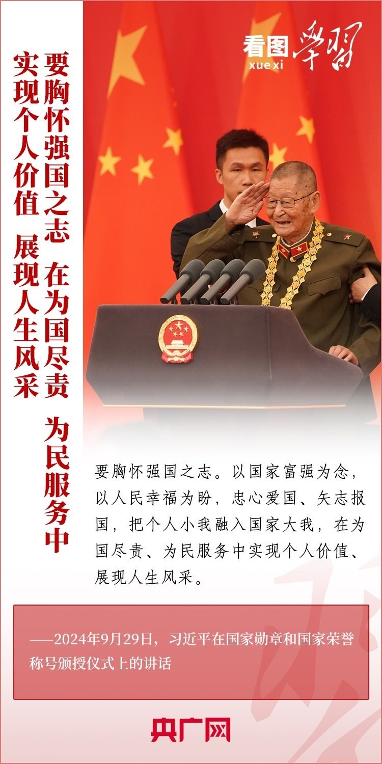9月29日,中華人民共和國國家勛章和國家榮譽稱號頒授儀式在北京舉行,習近平總書記向國家勛章和國家榮譽稱號獲得者頒授勛章獎章并發(fā)表重要講話??倳洀娬{,全黨全國各族人民要以英雄模范為榜樣,團結奮進、砥礪前行,匯聚起共襄強國盛舉的磅礴力量。一起來學習!