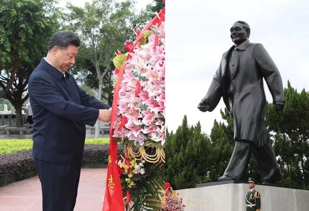 △2020年10月14日,深圳經(jīng)濟特區(qū)建立40周年慶祝大會在廣東深圳市隆重舉行,習近平總書記在會上發(fā)表重要講話。這是當天下午,總書記來到蓮花山公園,向鄧小平同志銅像敬獻花籃。