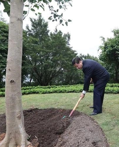 8年前種下的那棵高山榕已是亭亭如蓋、枝繁葉茂,展現(xiàn)出蓬勃的生命活力??倳?shū)記走到樹(shù)下,深有感慨地說(shuō):“8年了,彈指一揮間啊。選的這個(gè)地方很好,樹(shù)冠能展開(kāi),樹(shù)長(zhǎng)得也快?!?/p>
