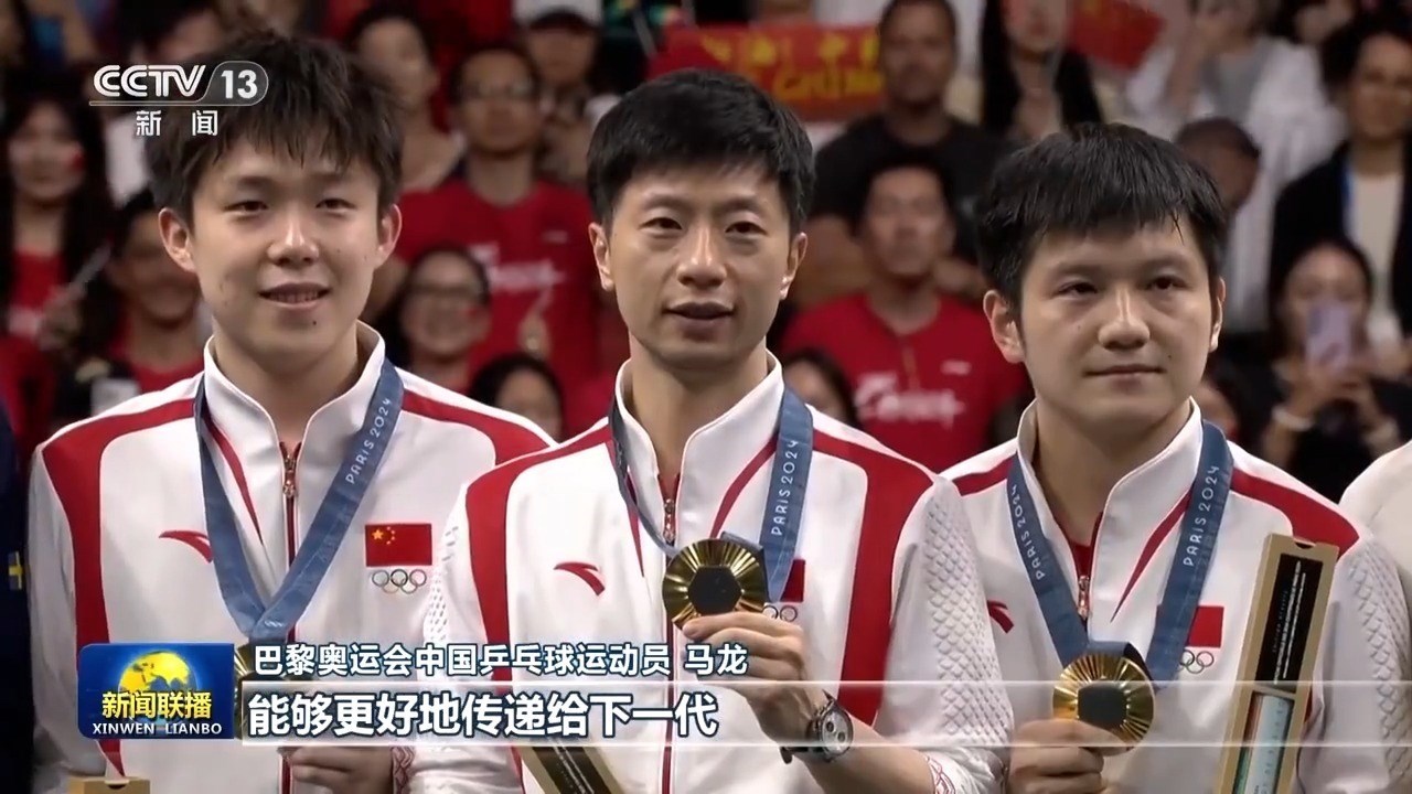 巴黎奧運(yùn)會(huì)中國(guó)乒乓球運(yùn)動(dòng)員 馬龍:首先能夠在新中國(guó)成立75周年之際,不光是我自己拿到第六枚奧運(yùn)金牌,同時(shí)能夠中國(guó)代表團(tuán)在海外也取得最好成績(jī),我還是非常開心,也非常榮幸。作為我來(lái)說(shuō),希望能夠把自己的一些比賽經(jīng)驗(yàn)以及一些對(duì)于乒乓球項(xiàng)目的理解,能夠更好地傳遞給下一代,然后希望他們能夠繼續(xù)為我們中國(guó)體育事業(yè)獻(xiàn)出自己的一份力量。