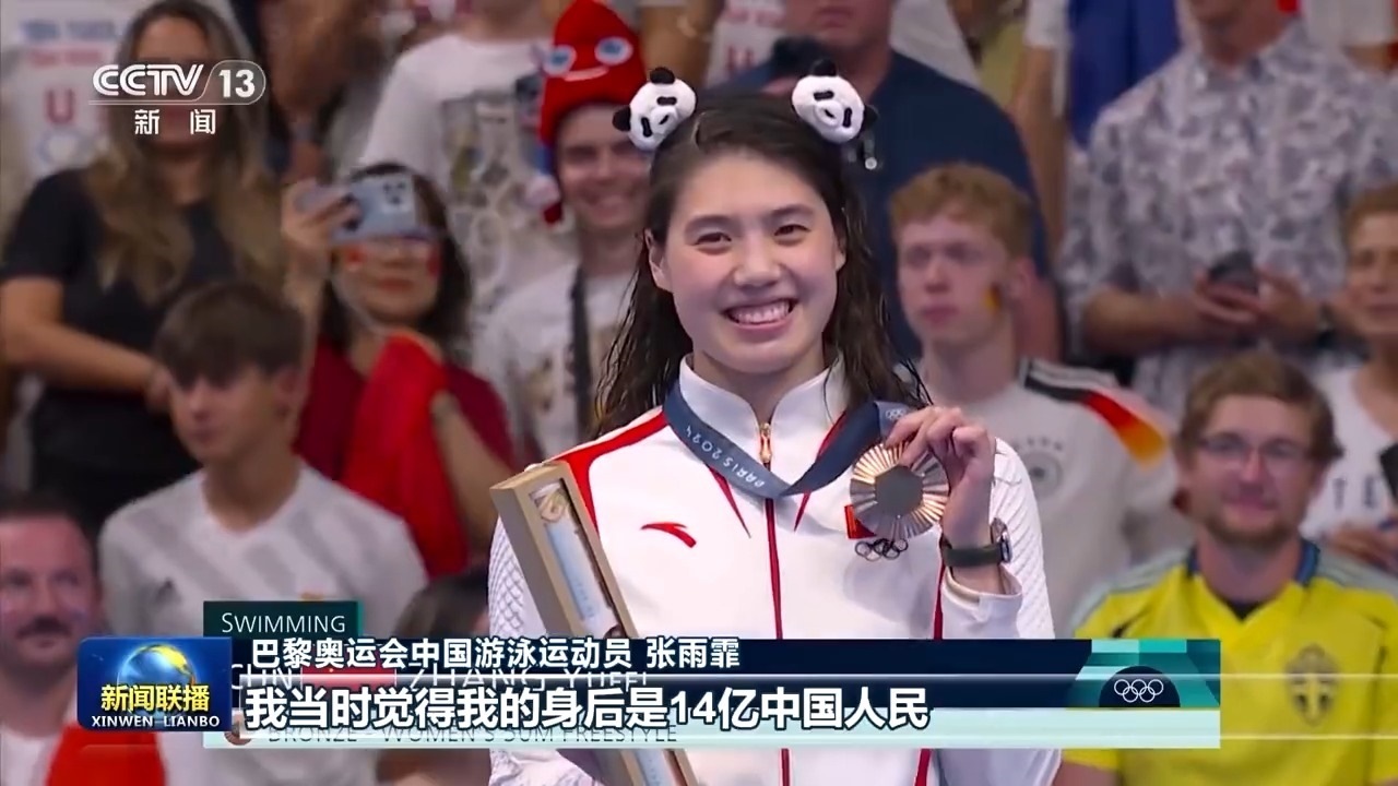 巴黎奧運(yùn)會(huì)中國(guó)游泳運(yùn)動(dòng)員 張雨霏:沒(méi)有想到他當(dāng)時(shí)走在我們跟前,每一名運(yùn)動(dòng)員的成績(jī)和名字他都記住了,然后就是親切地與我們交談,每個(gè)人交談的內(nèi)容都不一樣。我覺(jué)得生在中國(guó)真好,特別是在賽場(chǎng)上的時(shí)候,我沒(méi)有拿到冠軍,但是我看見(jiàn)一面面五星紅旗,他們依然在為我加油吶喊,安慰我,我當(dāng)時(shí)覺(jué)得我的身后是14億中國(guó)人民。