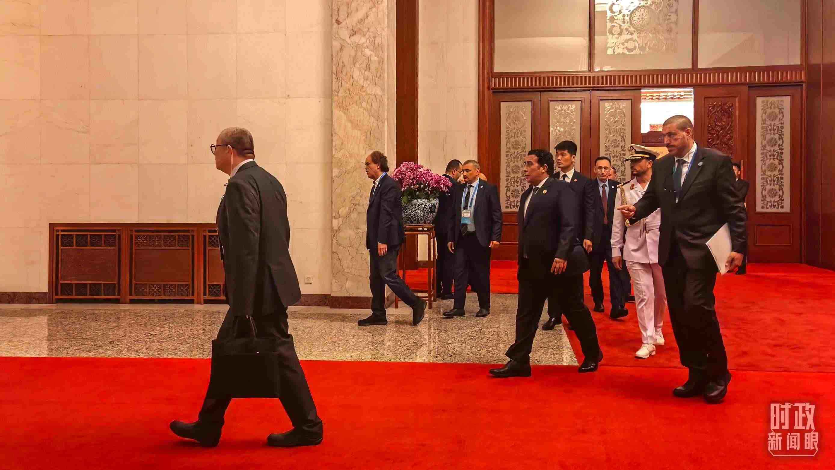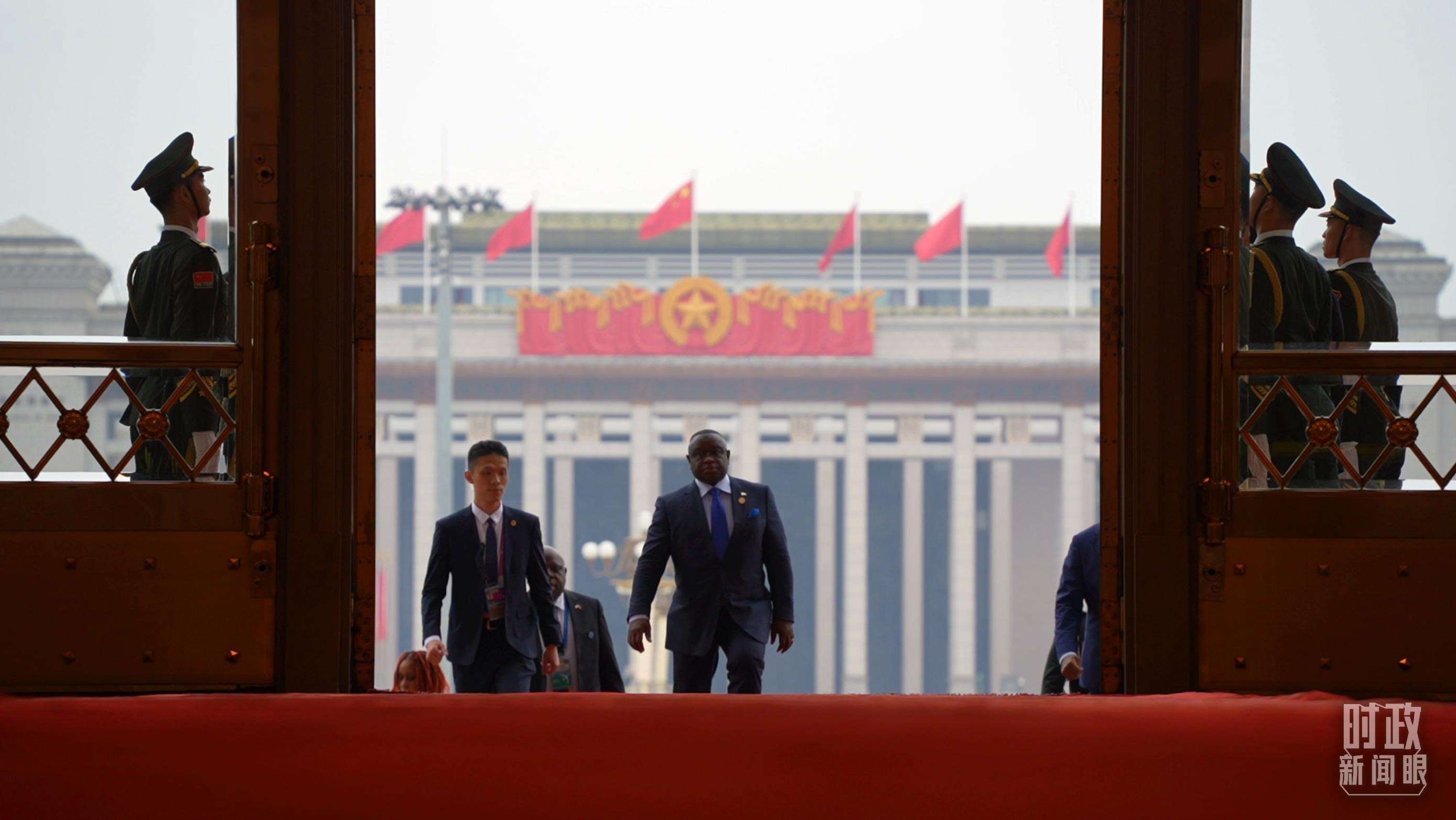 △非洲國家領(lǐng)導(dǎo)人步入人民大會(huì)堂。(總臺(tái)央視記者趙怡彬拍攝)