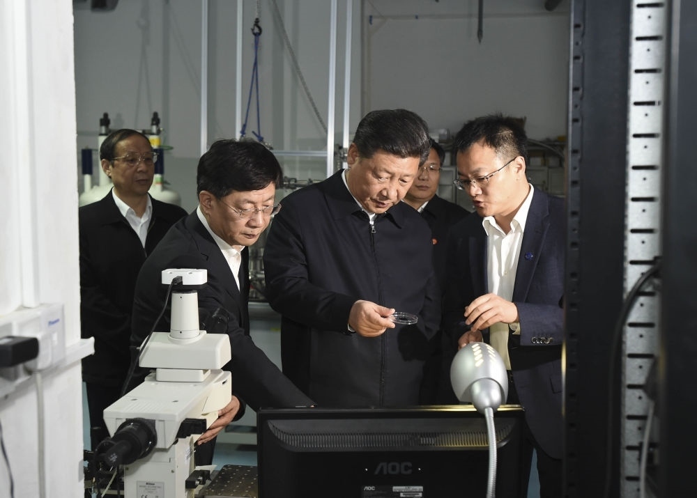 2016年4月26日,習近平在中國科技大學近代物理系自旋磁共振實驗室了解科研情況。