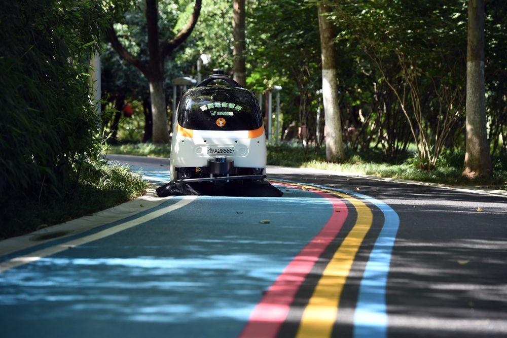 2022年6月24日,智能無人清掃機器人在安徽合肥一處公園清掃路面。