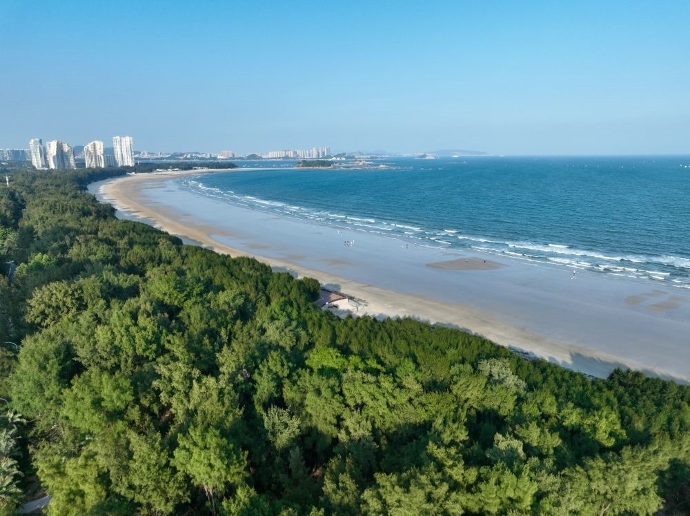 拼版照片,上圖為昔日的東山縣東門嶼鷹嘴巖附近風貌(資料照片),下圖為2018年10月17日拍攝的東門嶼鷹嘴巖附近風貌。