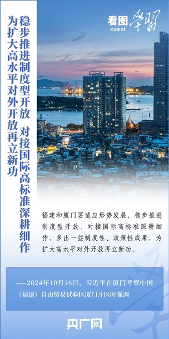 10月15日至16日,習(xí)近平總書記在福建漳州、廈門等地考察調(diào)研,聽取福建省委和省政府工作匯報(bào)。總書記對(duì)福建各項(xiàng)工作取得的成績(jī)給予肯定,并對(duì)下一步工作提出明確要求,強(qiáng)調(diào)要“扭住建設(shè)機(jī)制活、產(chǎn)業(yè)優(yōu)、百姓富、生態(tài)美的新福建目標(biāo)不放松,一張藍(lán)圖繪到底”,勉勵(lì)福建“進(jìn)一步全面深化改革,全方位推動(dòng)高質(zhì)量發(fā)展,在中國式現(xiàn)代化建設(shè)中奮勇爭(zhēng)先”。一起來學(xué)習(xí)!