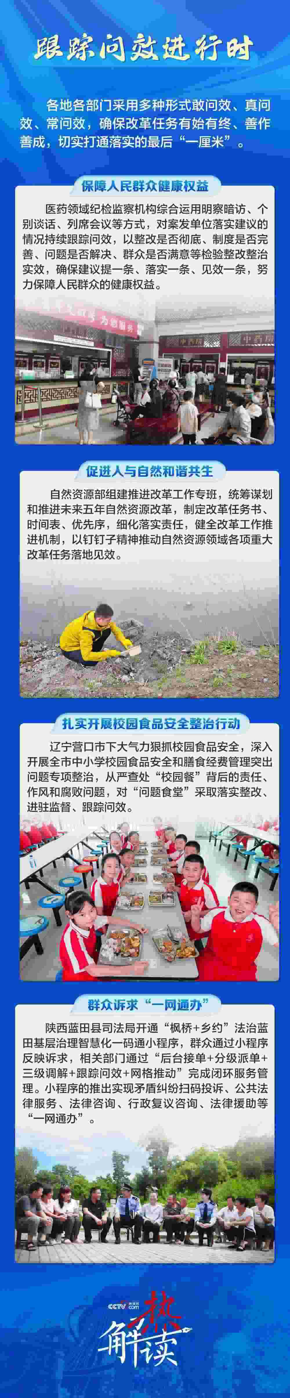 今年7月,在黨的二十屆三中全會(huì)第二次全體會(huì)議上,習(xí)近平總書記進(jìn)一步提出,要強(qiáng)化跟蹤問效,深入查找存在的問題和原因,及時(shí)推動(dòng)整改。