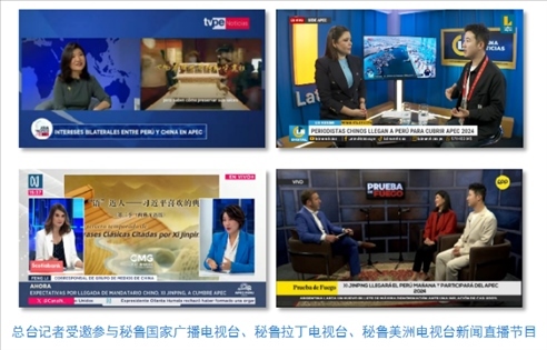 中央廣播電視總臺(tái)記者受邀參與秘魯國家廣播電視臺(tái)、秘魯拉丁電視臺(tái)和當(dāng)?shù)厥找暵首罡叩拿佤斆乐揠娨暸_(tái)新聞直播節(jié)目,介紹《平“語”近人——習(xí)近平喜歡的典故》第三季(西班牙語版)內(nèi)容,帶領(lǐng)當(dāng)?shù)厥鼙姼形蛄?xí)近平主席用典中蘊(yùn)含的中國智慧。