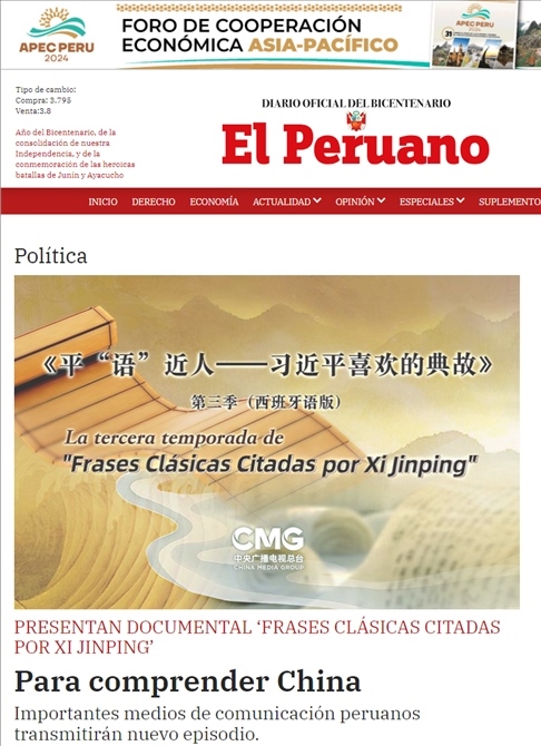 △《秘魯人報(bào)》刊發(fā)文章《<平“語”近人>專題片播出 更好地了解中國——秘魯各大媒體播出新一季片集》