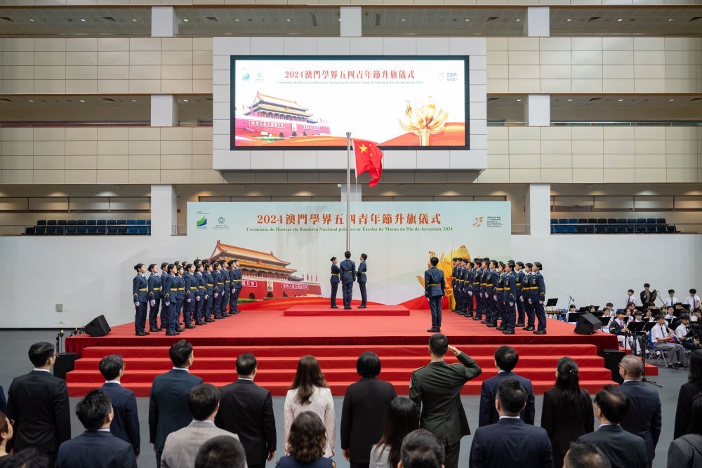 2024年5月4日,澳門學(xué)界升旗隊參加“澳門學(xué)界五四青年節(jié)升旗儀式”。五四青年節(jié)當(dāng)天,澳門特區(qū)政府教育及青年發(fā)展局舉辦多項紀念活動,旨在加深澳門青年對五四運動歷史意義和時代價值的認識,幫助青年更好地實踐和傳承五四精神。