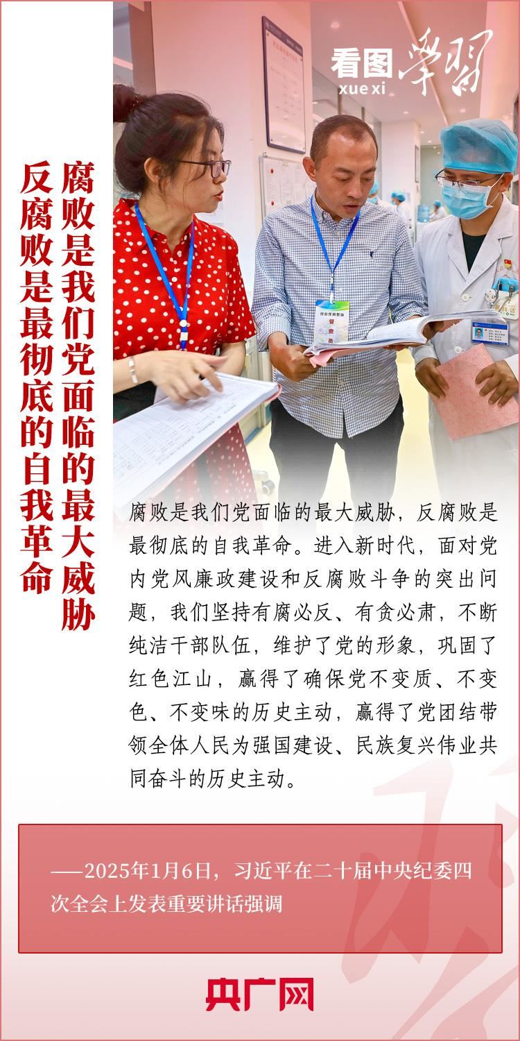 1月6日,習(xí)近平總書(shū)記在二十屆中央紀(jì)委四次全會(huì)上發(fā)表重要講話,充分肯定過(guò)去一年全面從嚴(yán)治黨取得的新進(jìn)展、新成效,深刻分析當(dāng)前反腐敗斗爭(zhēng)形勢(shì),對(duì)堅(jiān)決打好反腐敗斗爭(zhēng)攻堅(jiān)戰(zhàn)、持久戰(zhàn)、總體戰(zhàn)提出明確要求??倳?shū)記強(qiáng)調(diào),新時(shí)代新征程,必須堅(jiān)持用改革精神和嚴(yán)的標(biāo)準(zhǔn)管黨治黨,努力取得更大成效,確保黨的二十大和二十屆三中全會(huì)部署落地落實(shí),確保黨始終成為中國(guó)特色社會(huì)主義事業(yè)的堅(jiān)強(qiáng)領(lǐng)導(dǎo)核心,推動(dòng)中國(guó)式現(xiàn)代化行穩(wěn)致遠(yuǎn)。一起來(lái)學(xué)習(xí)!
