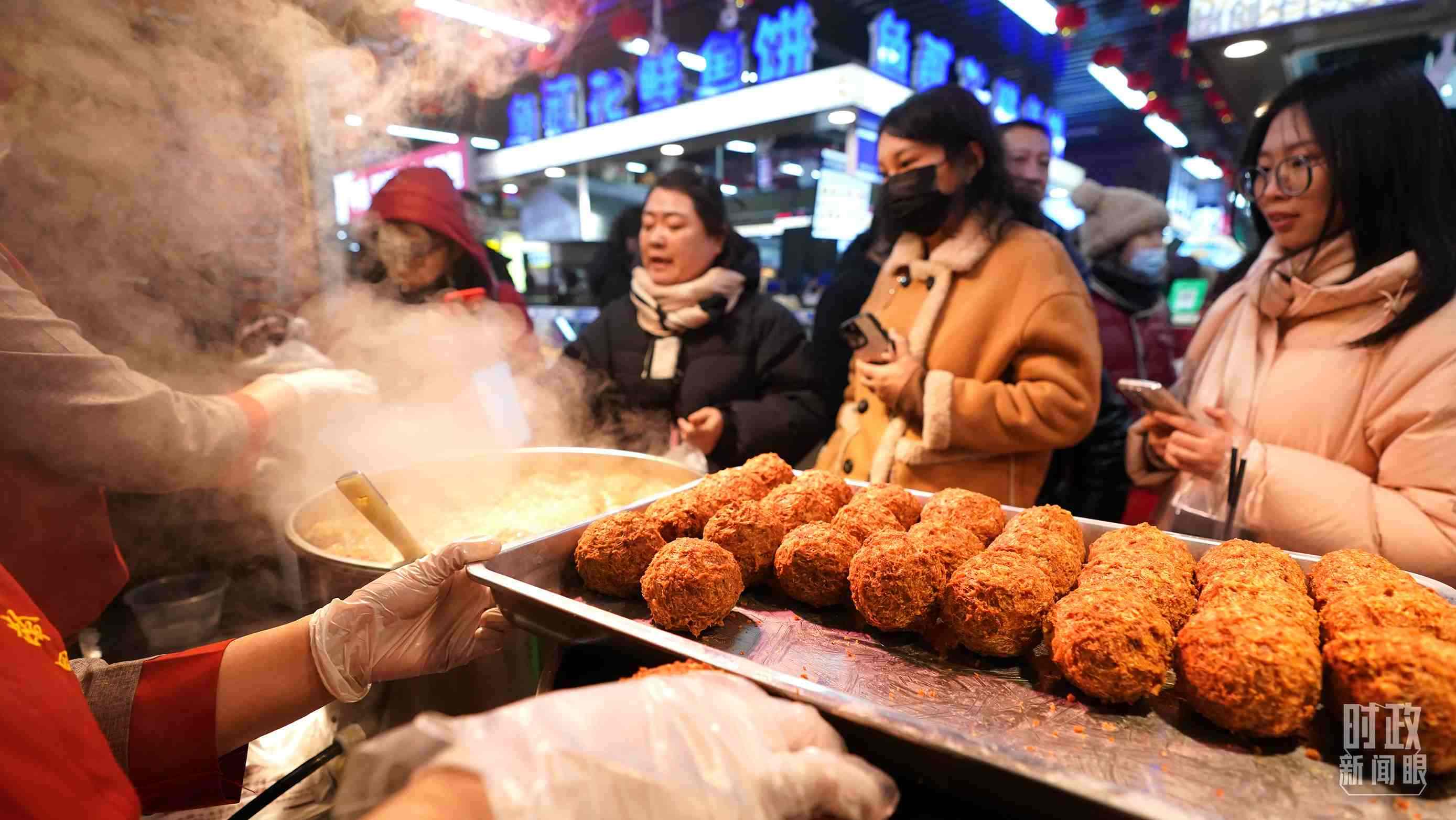 春節(jié)日益臨近,大東副食品商場里,叫賣聲、詢價聲、滋滋冒油聲、嘭嘭剁餡聲……一派熱鬧非凡。在東北的數(shù)九寒天里,當沸騰的煙火氣遇到節(jié)日的喜慶氛圍,寒冬臘月里更顯熱氣騰騰。