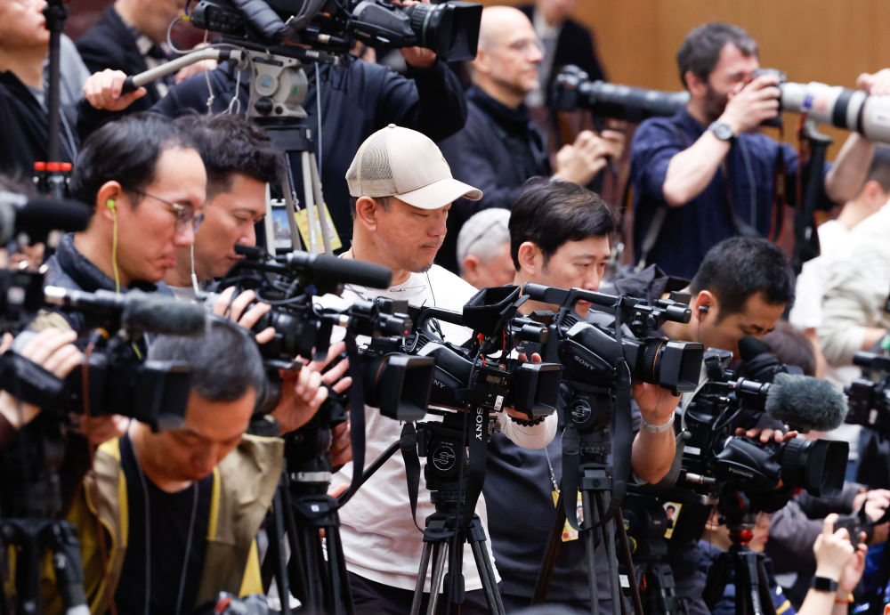 2025年3月10日,全國政協(xié)十四屆三次會議在北京人民大會堂舉行閉幕會。這是記者在會場采訪。新華社記者 張玉薇 攝