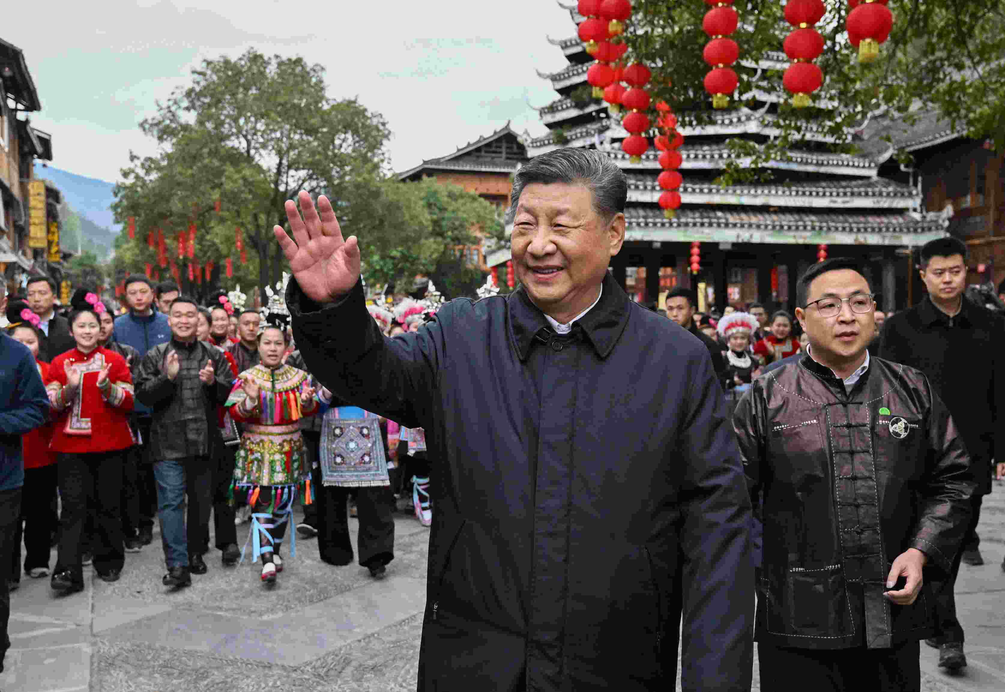 17日下午,習(xí)近平總書記在貴州省黔東南苗族侗族自治州考察了黎平縣肇興侗寨,了解當(dāng)?shù)丶訌?qiáng)基層黨組織建設(shè)和社會(huì)治理、保護(hù)傳承民族傳統(tǒng)文化、推進(jìn)鄉(xiāng)村全面振興等情況。
