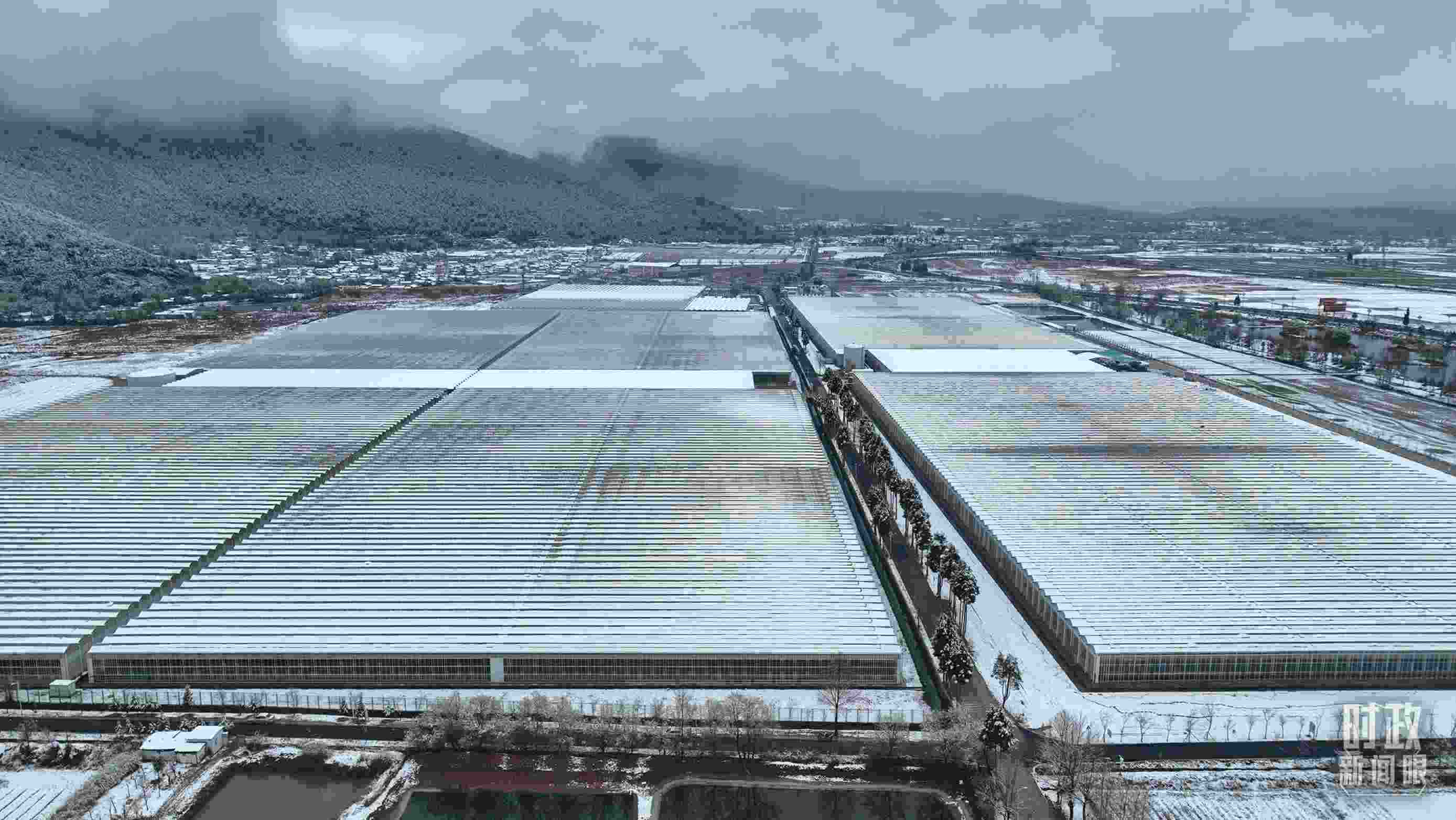△銀裝素裹的麗江現(xiàn)代花卉產業(yè)園。(總臺央視記者郭鴻拍攝)