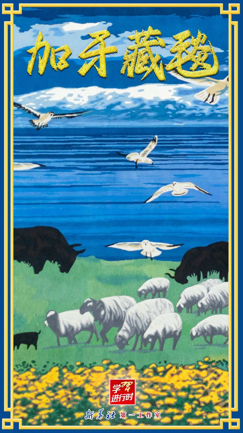 “真是琳瑯滿目?!绷?xí)近平總書記饒有興致走近察看,不時(shí)用手觸摸感受藏毯的質(zhì)地。