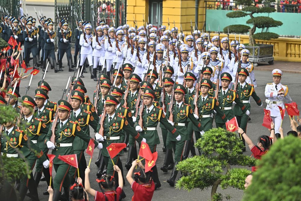 當(dāng)?shù)貢r(shí)間4月14日,中共中央總書記、國家主席習(xí)近平在河內(nèi)出席越共中央總書記蘇林舉行的歡迎儀式。
