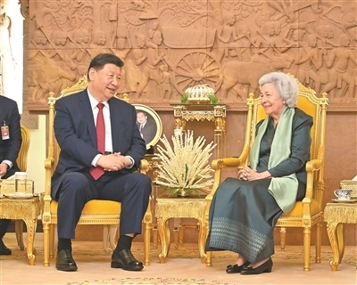 本報金邊4月17日電 (記者王玉琳、包晗)4月17日晚,國家主席習近平同柬埔寨太后莫尼列在金邊王宮舉行會見。