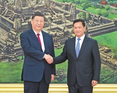 本報(bào)金邊4月17日電 (記者李婕、白元琪)4月17日晚,國家主席習(xí)近平同柬埔寨首相洪瑪奈在金邊和平大廈舉行會(huì)談。兩國領(lǐng)導(dǎo)人一致同意攜手構(gòu)建新時(shí)代全天候中柬命運(yùn)共同體,宣布2025年為“中柬旅游年”。