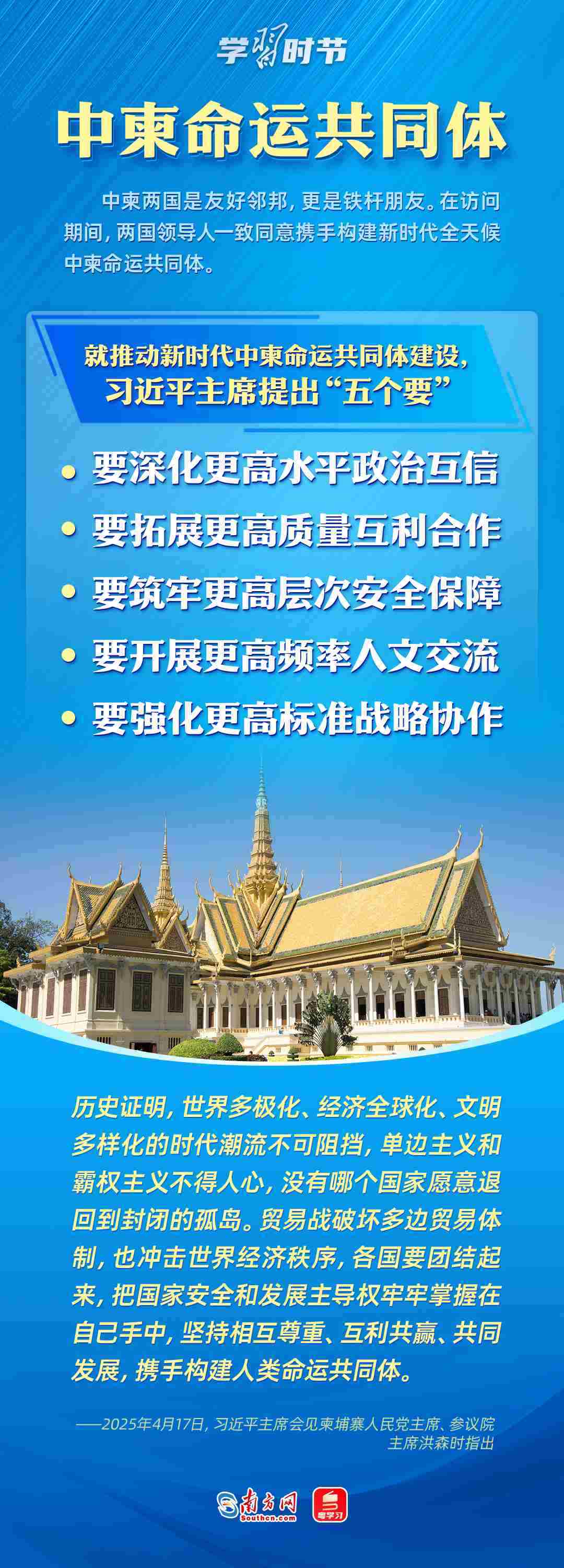 日前,中央周邊工作會議召開,強(qiáng)調(diào)要聚焦構(gòu)建周邊命運(yùn)共同體,努力開創(chuàng)周邊工作新局面。4月14日至18日,習(xí)近平主席出訪東南亞三國——越南、馬來西亞、柬埔寨。這是習(xí)近平主席今年首次出訪,對推動中國同三國關(guān)系發(fā)展具有重大意義,也為周邊命運(yùn)共同體建設(shè)擘畫了新藍(lán)圖。