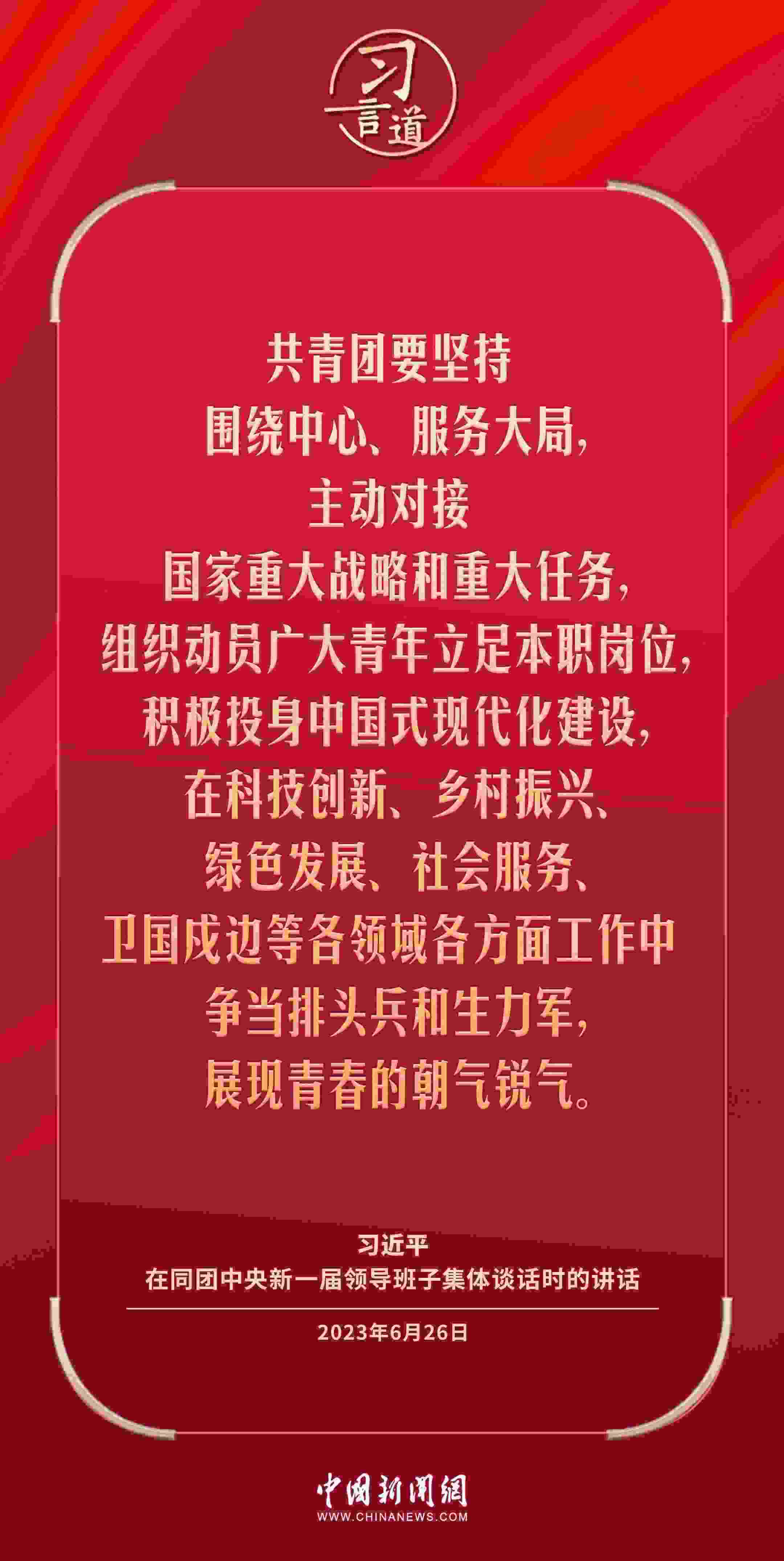 5月1日出版的《求是》雜志發(fā)表中共中央總書記、國家主席、中央軍委主席習(xí)近平的重要文章《激勵(lì)新時(shí)代青年在中國式現(xiàn)代化建設(shè)中挺膺擔(dān)當(dāng)》。這是習(xí)近平總書記2023年6月26日在同團(tuán)中央新一屆領(lǐng)導(dǎo)班子集體談話時(shí)講話的主要部分。