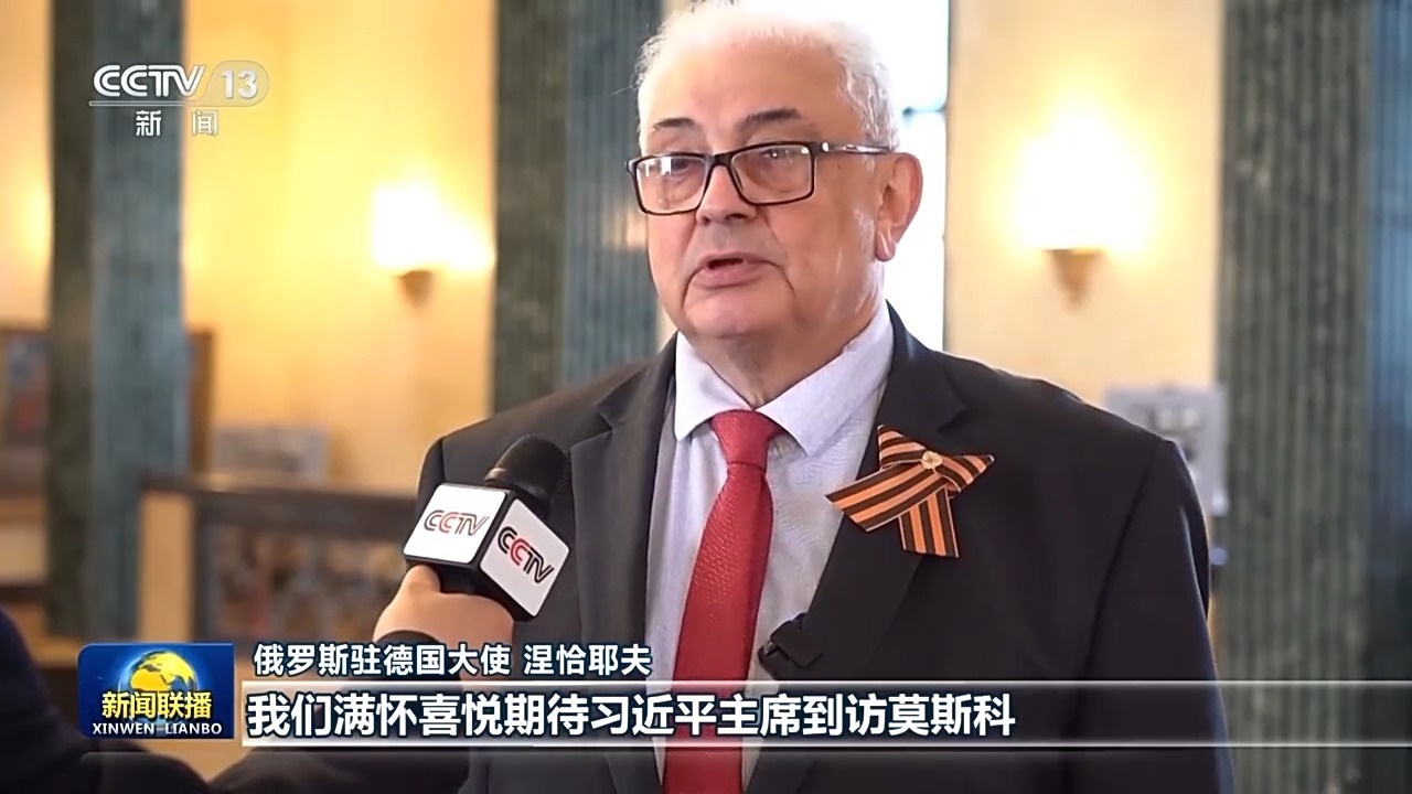 俄羅斯駐德國大使 涅恰耶夫:我們滿懷喜悅期待習(xí)近平主席到訪莫斯科。蘇聯(lián)人民和中國人民在二戰(zhàn)中付出了巨大犧牲,最終贏得世界反法西斯戰(zhàn)爭勝利。習(xí)主席曾引用俄歷史學(xué)家克柳切夫斯基的話說,如果喪失對歷史的記憶,我們的心靈就會在黑暗中迷失,我認為習(xí)主席觀點非常正確。每個國家、每個民族都必須了解歷史,沒有歷史就沒有真正的未來,我對兩國人民擁有良好的關(guān)系和美好的未來充滿希望。