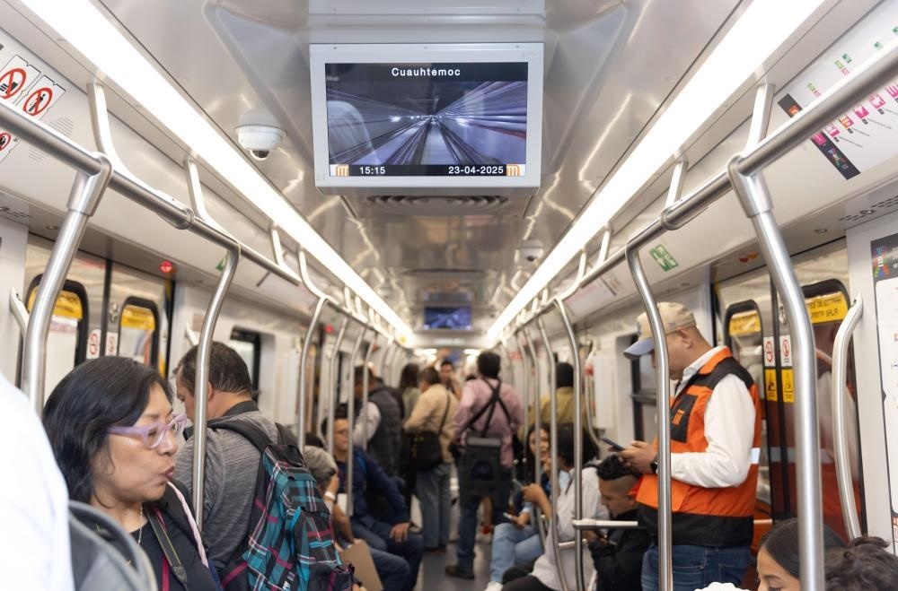 △2025年4月,人們在墨西哥首都墨西哥城乘坐地鐵新1號(hào)線列車。