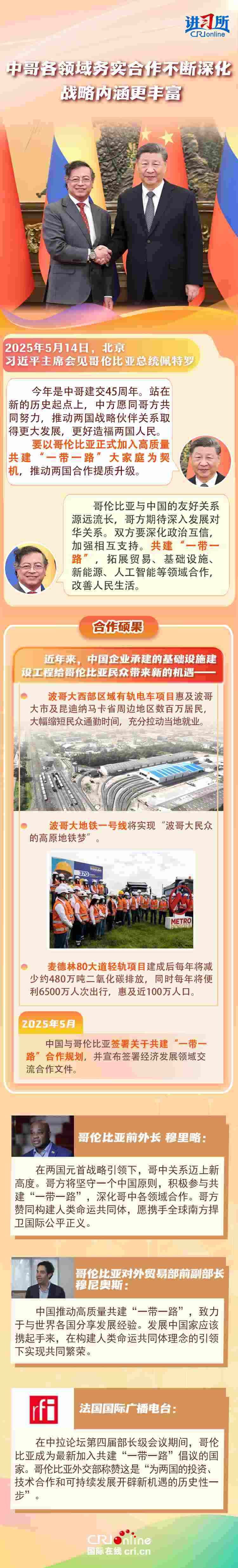 習(xí)近平主席在這三場(chǎng)雙邊外事活動(dòng)中,均提到了共建“一帶一路”倡議:“深化‘一帶一路’倡議同巴西發(fā)展戰(zhàn)略有效對(duì)接”“要以哥倫比亞正式加入高質(zhì)量共建‘一帶一路’大家庭為契機(jī),推動(dòng)兩國(guó)合作提質(zhì)升級(jí)”“雙方要落實(shí)好共建‘一帶一路’合作規(guī)劃”……10多年來,在習(xí)近平主席親自擘畫和推動(dòng)下,共建“一帶一路”從中國(guó)倡議走向國(guó)際實(shí)踐,取得了實(shí)打?qū)?、沉甸甸的成就?/p>