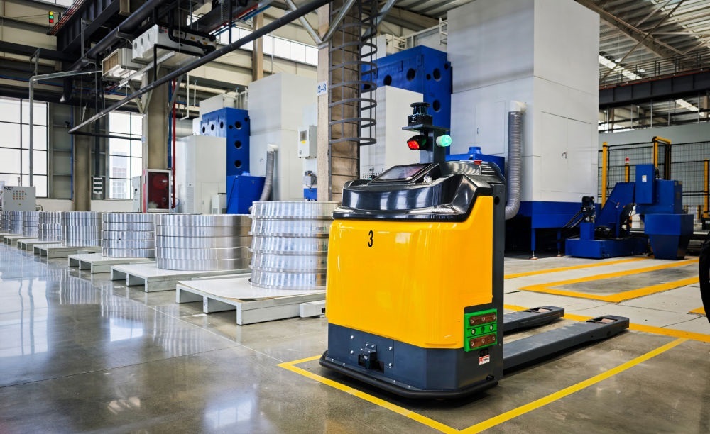 2025年5月19日在洛軸智能工廠拍攝的自動導向運輸車(AGV)。