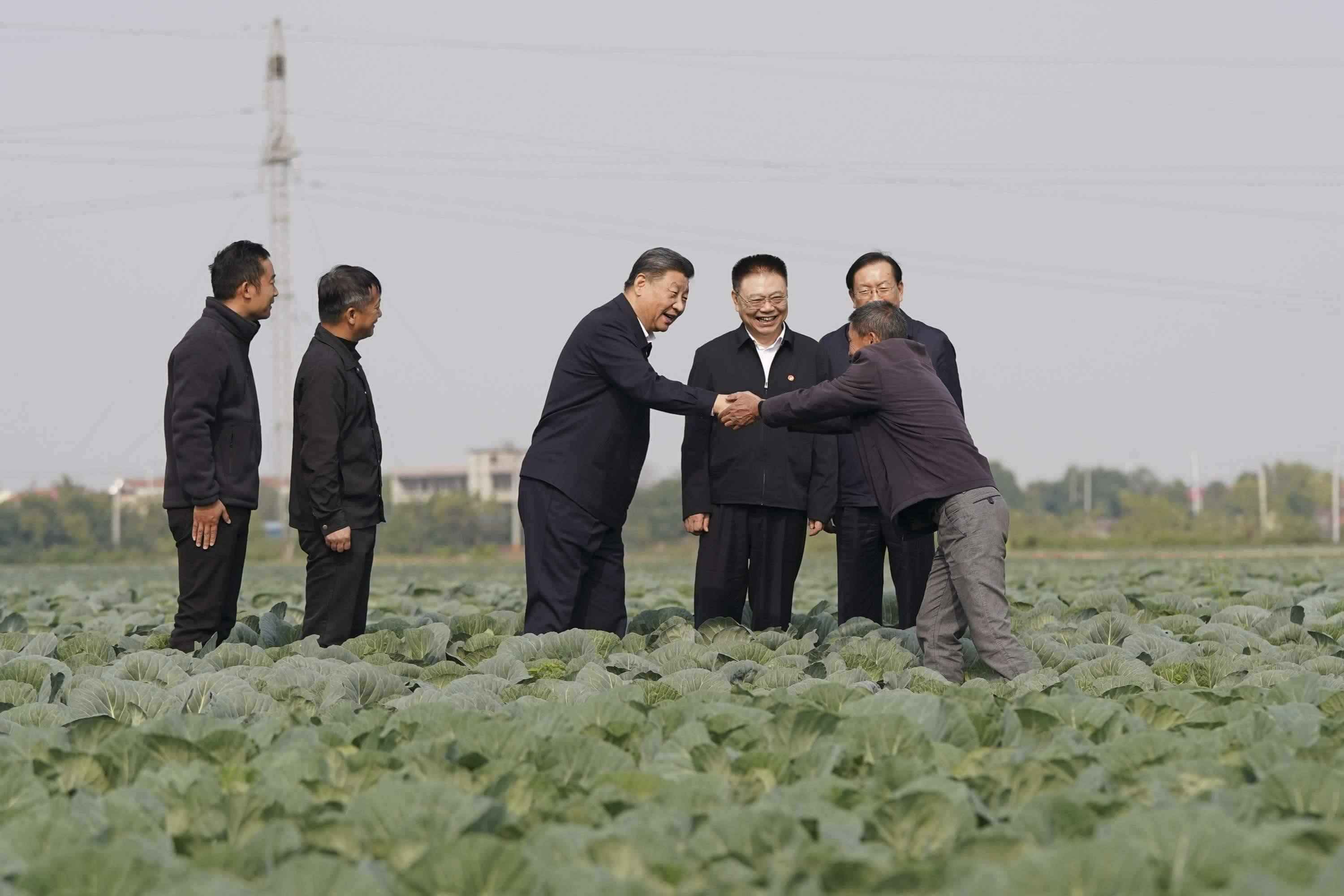 2025年11月7日至8日,中共中央總書記、國家主席、中央軍委主席習(xí)近平在廣東考察。這是7日下午,習(xí)近平在梅州市梅縣區(qū)雁洋鎮(zhèn)南福金柚種植基地考察。新華社發(fā) 肖翊/攝