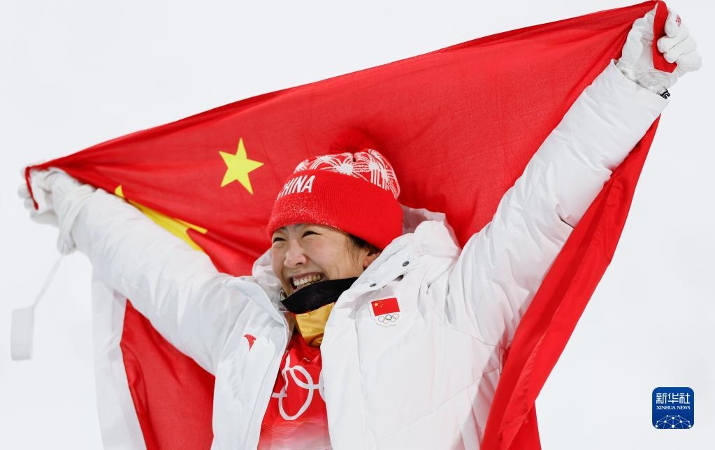 背景:在獲得自由式滑雪女子空中技巧冠軍后,老將徐夢(mèng)桃身披國旗,一遍一遍高聲呼喊著,眼中帶淚。12年,四屆冬奧會(huì),故事終于有了圓夢(mèng)的結(jié)局。