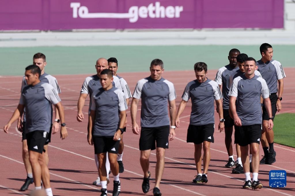 11月18日,國際足聯(lián)裁判委員會(huì)主席皮耶路易吉·科利納(后右)觀看訓(xùn)練。新華社記者 賈浩成 攝